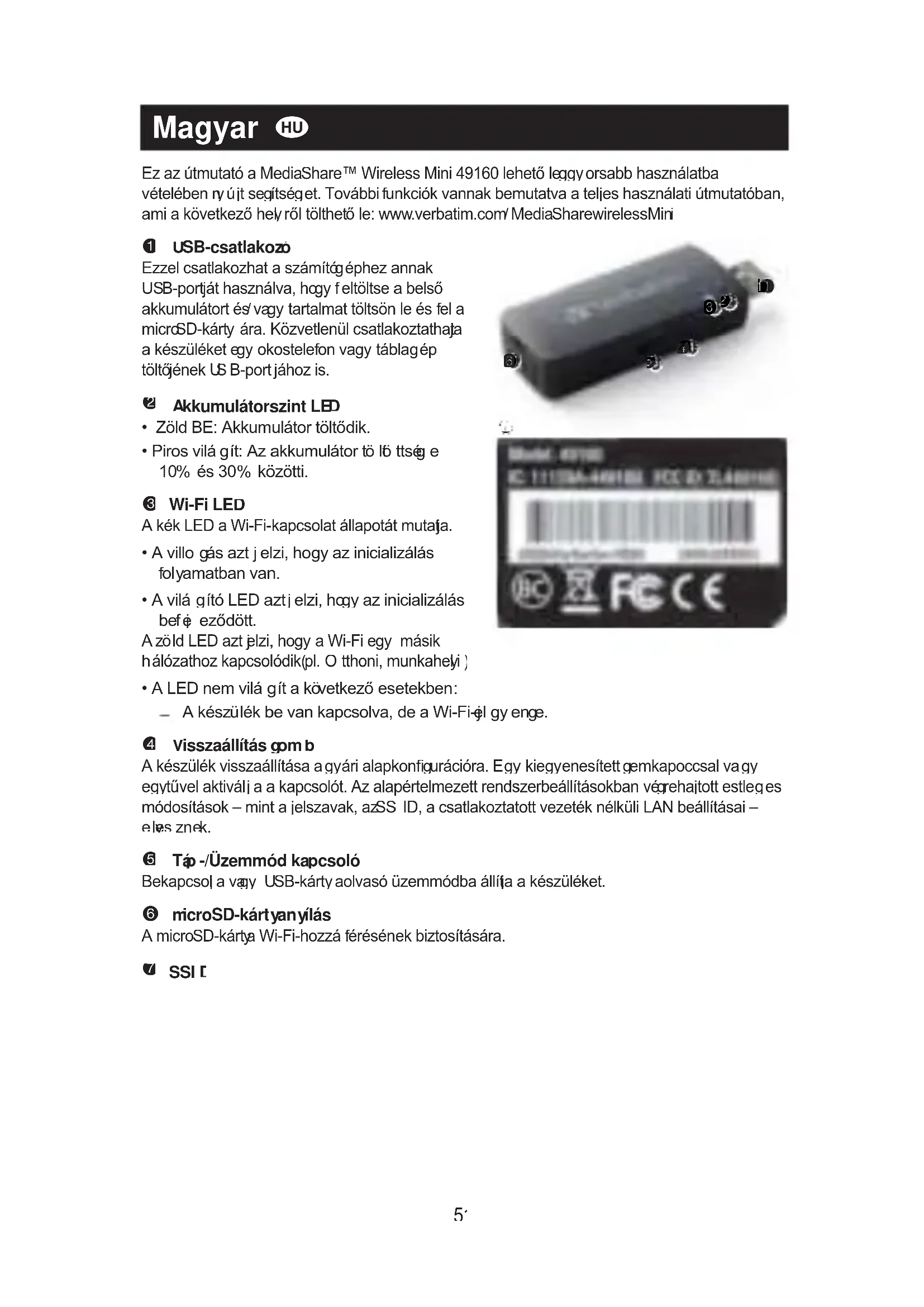 HASZNÁLATI ÚTMUTATÓ MediaShare Wireless Mini VERBATIM