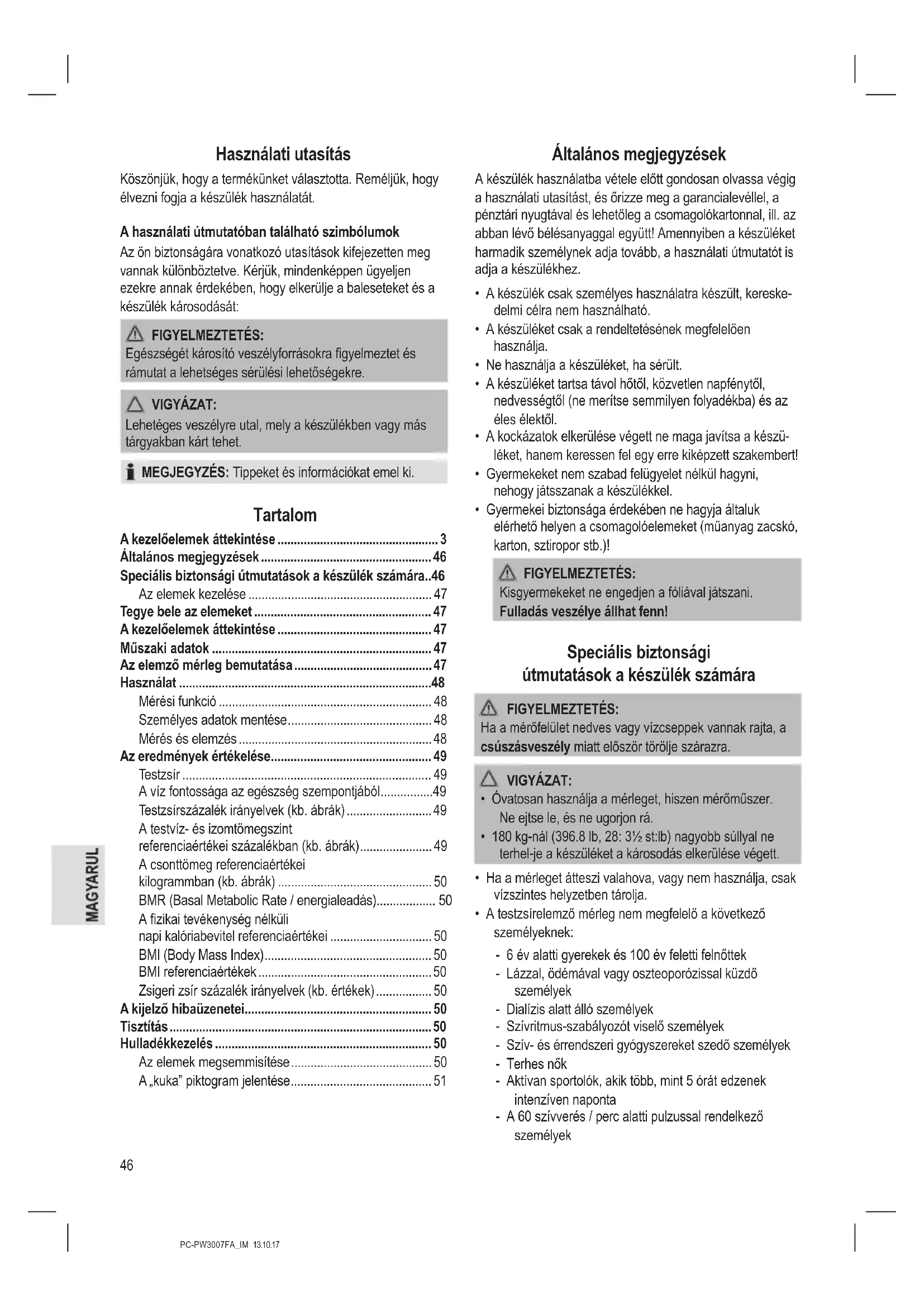 Általános megjegyzések....46
