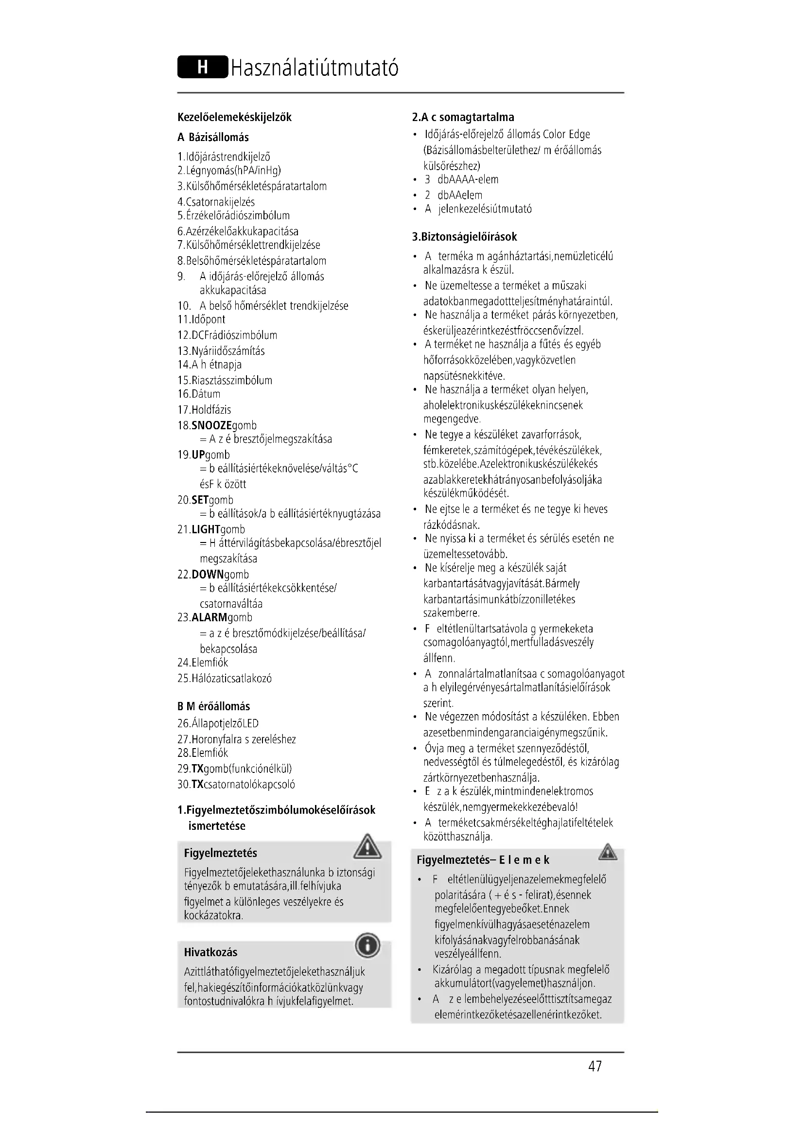 - Aterméket csak mérsékelt éghajlati feltételek között használja. Figyelmeztetés –Elemek