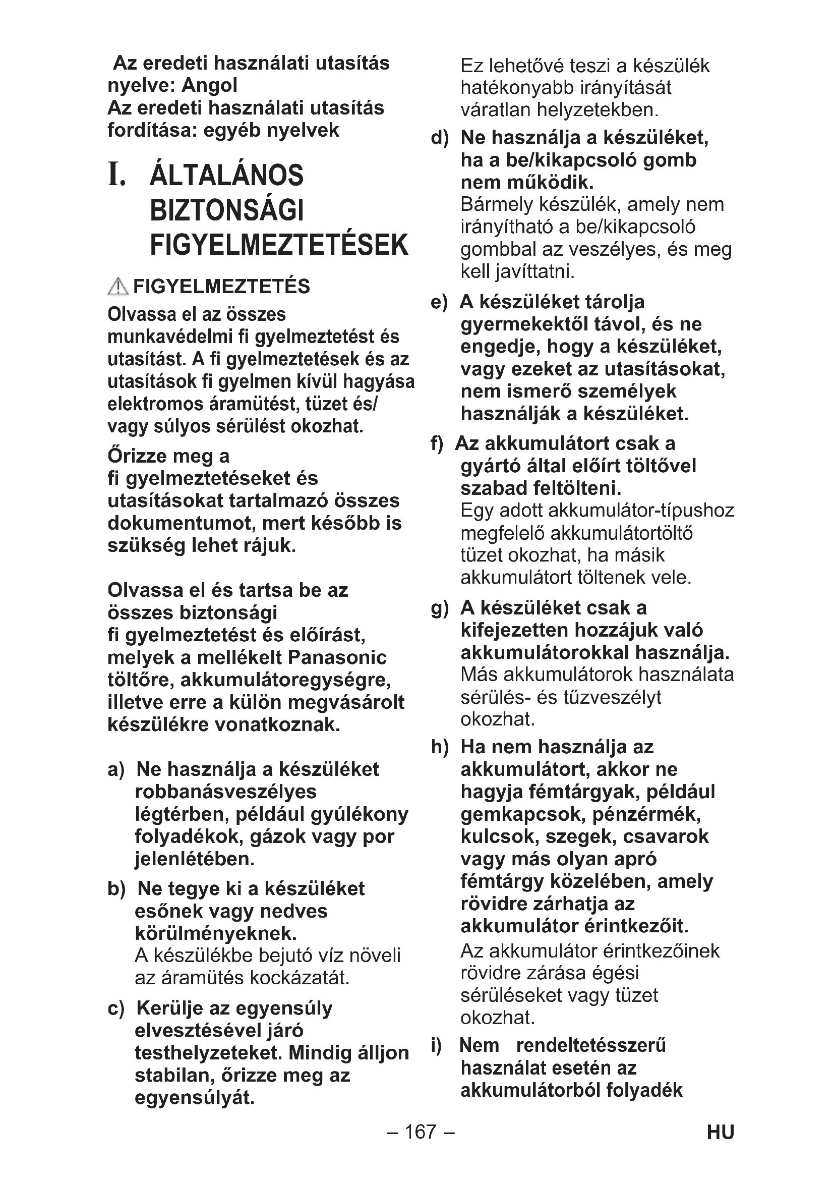 I. ALTALÁNOS BIZTONSAGI FIGYELMEZTETÉSEK
