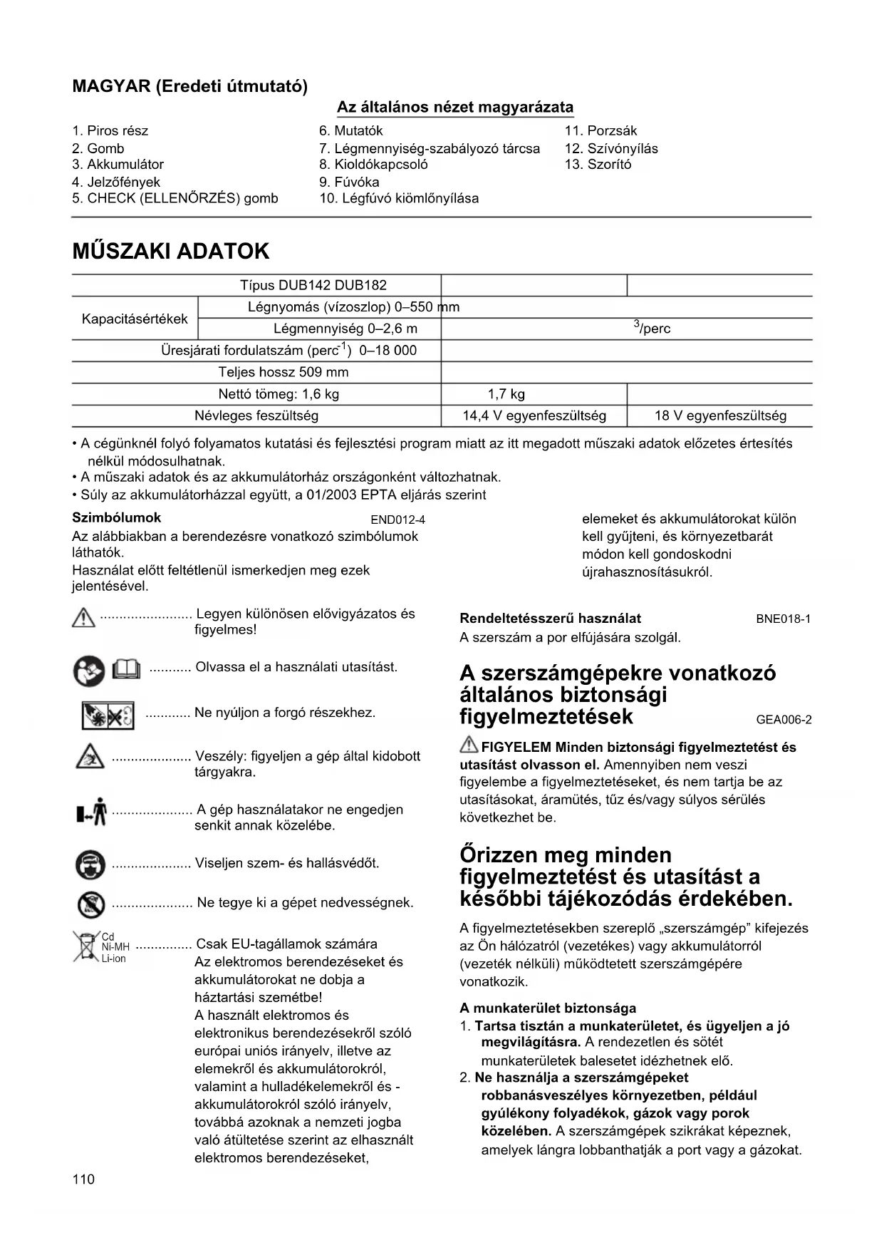 A figyelmeztetekben szereplö „szerszámgep" kifejezes az On halózatról (vezetékes) vagy akkumulátorról (vezeték nélkūli) muködtetett szerszámgepére vonatkozik.