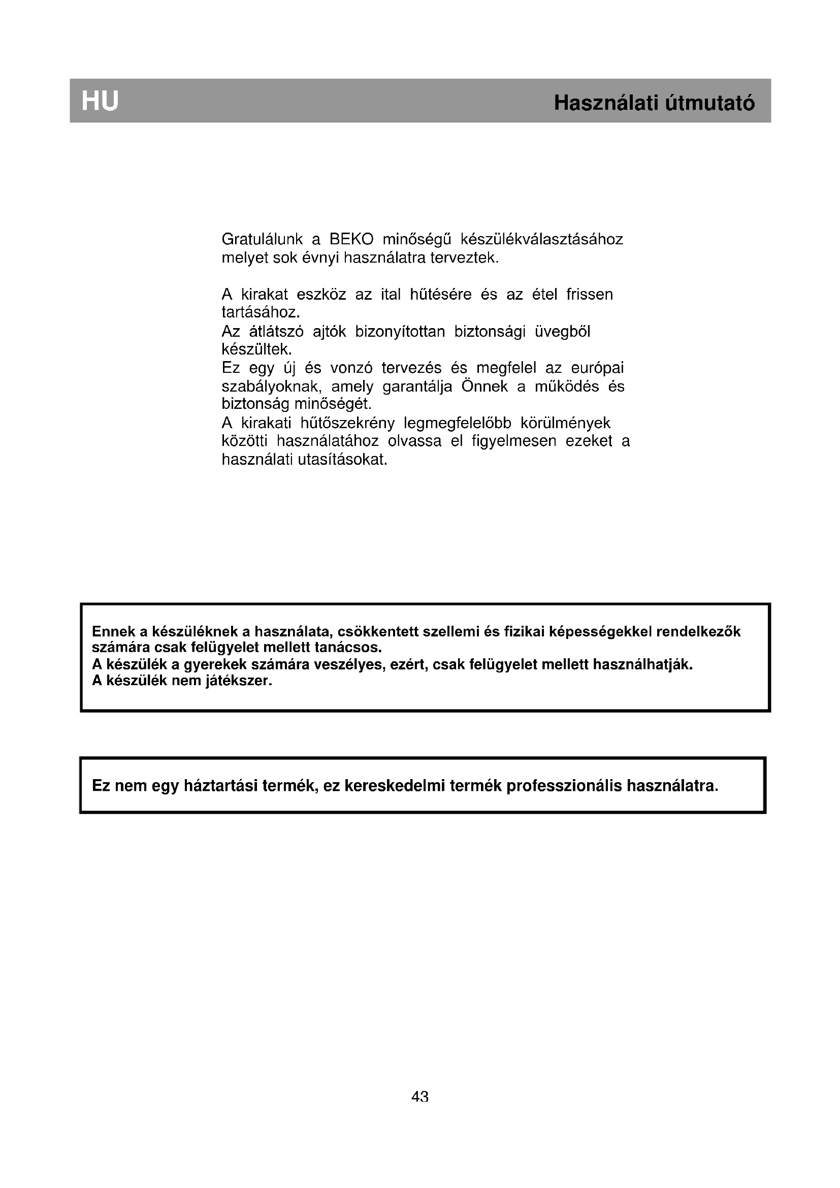 A terméken vagy a csomagoláson található ábra azt jelzi, hogy a termék nem kezelhetõ háztartási hulladékként, hanem a megfelelõ, az elektromos és elektronikus felszerelések újrahasznosítására létesült begyûjtõ pontokban kell leadni. Ha gondoskodik a termék megfelelõ leselejtezésérõl, segít megelõzni azokat a környezetre és egészségre káros hatásokat, amelyeket a termék nem megfelelõ leselejtezése eredményezne. A termék leselejtezésével kapcsolatos további részletekért forduljon a lakóhelyén található háztartási hulladék begyûjtõhöz vagy az árúházhoz, ahol a terméket megvásárolta.Čestitamo Vam na izboru kvalitetnog BEKO aparata koji je napravljen da vam radi godinama. Vitrine su aparati za hlađenje pića i čuvanje sveže hrane. Opremljena su providnim vratima od bezbednosnog stakla. Ima novi i atraktivni dizajn i proizvedena je prema međunarodnim pravilima, koja vam garantuju radne i bezbednosne kapacitete. Da biste koristili Vašu vitrinu za rashlađivanje u najboljim uslovima, molimo pažljivo pročitajte uputstva za upotrebu. Originalni rezervni delovi će biti obezbeđeni za 10 godina od dana kupovine proizvoda.