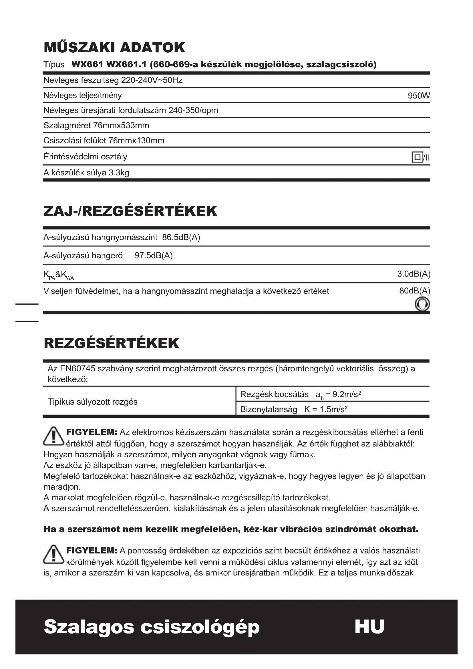 Tipus WX661 WX661.1 (660-669-a keszülék megjelöse, szalagcsiszoló)