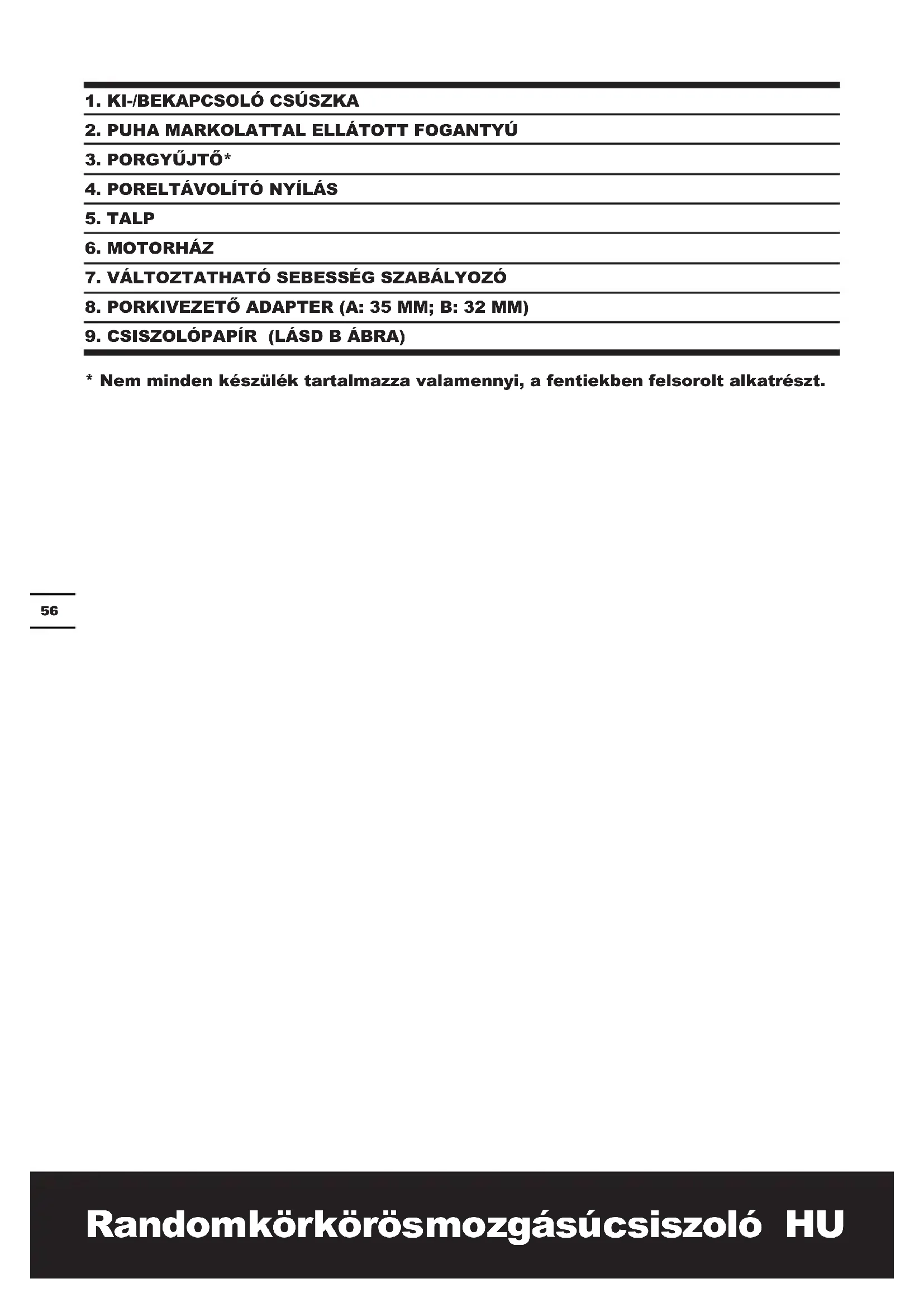 * Nem minden készülék tartalmazza valamennyi, a fentiekben felsorolt alkatrészt.