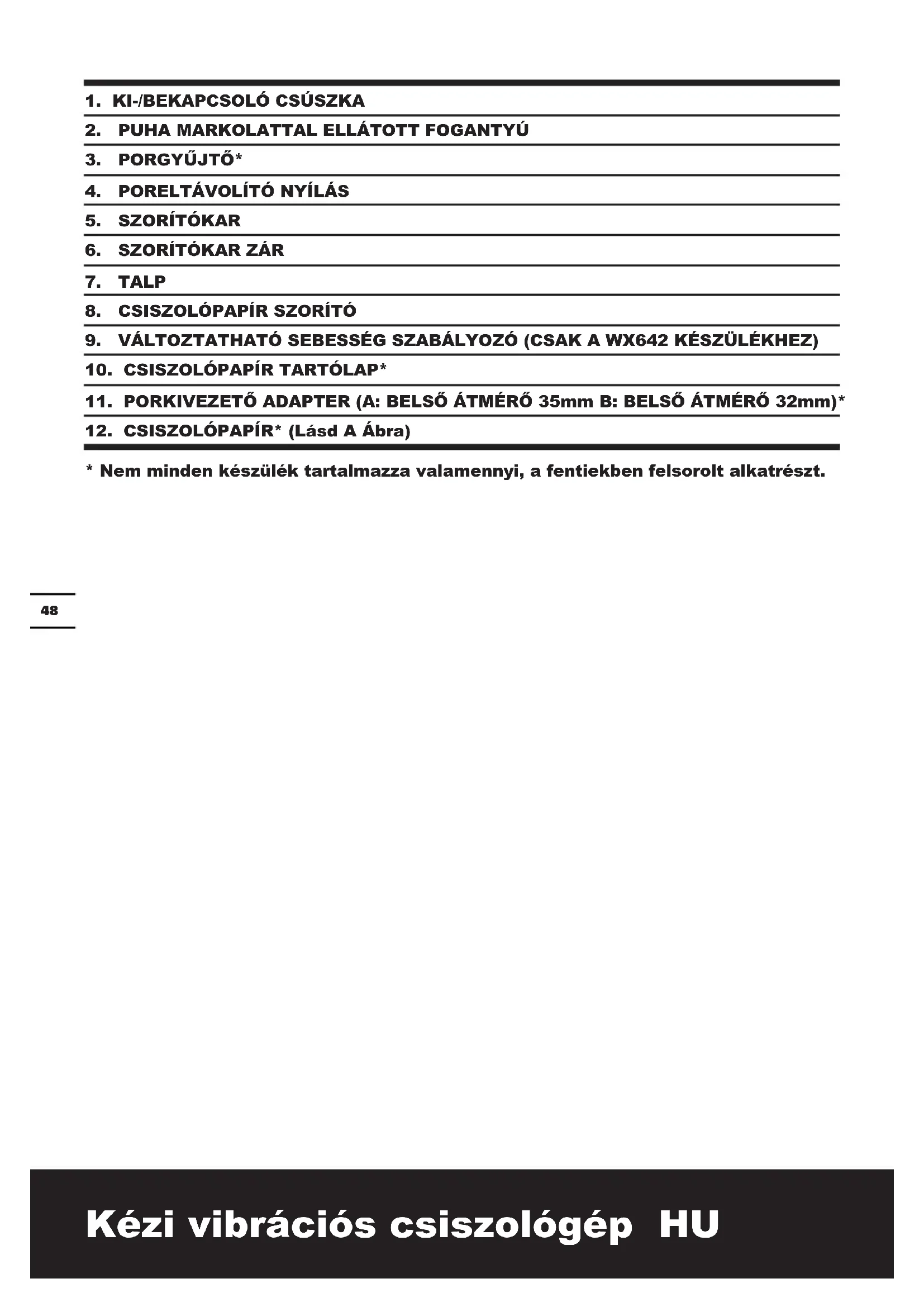 | Változtatható sebesség szabályozó(csak a WX642 készülékhez) | Lásd I. ábra |