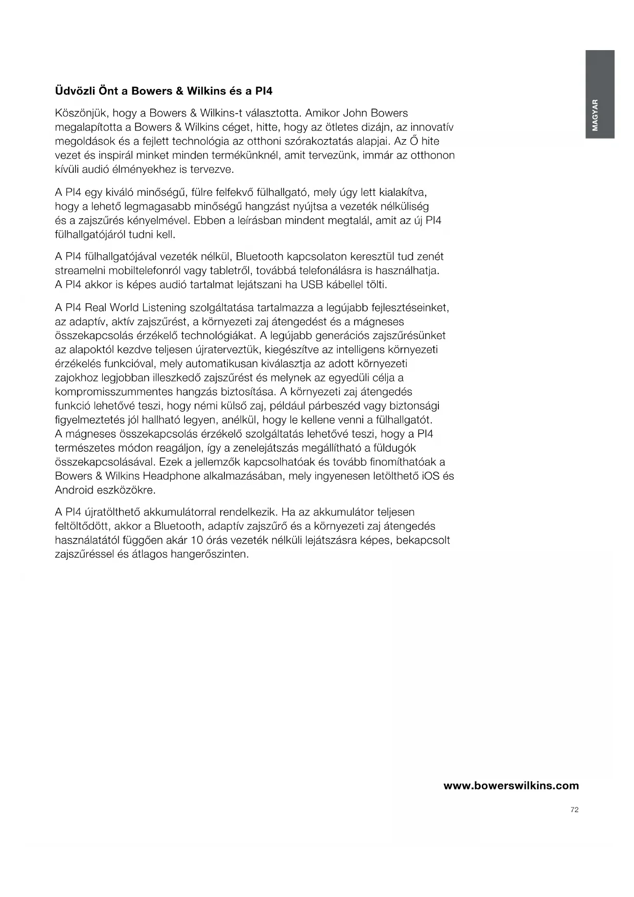 HASZNÁLATI ÚTMUTATÓ PI4 BOWERS & WILKINS