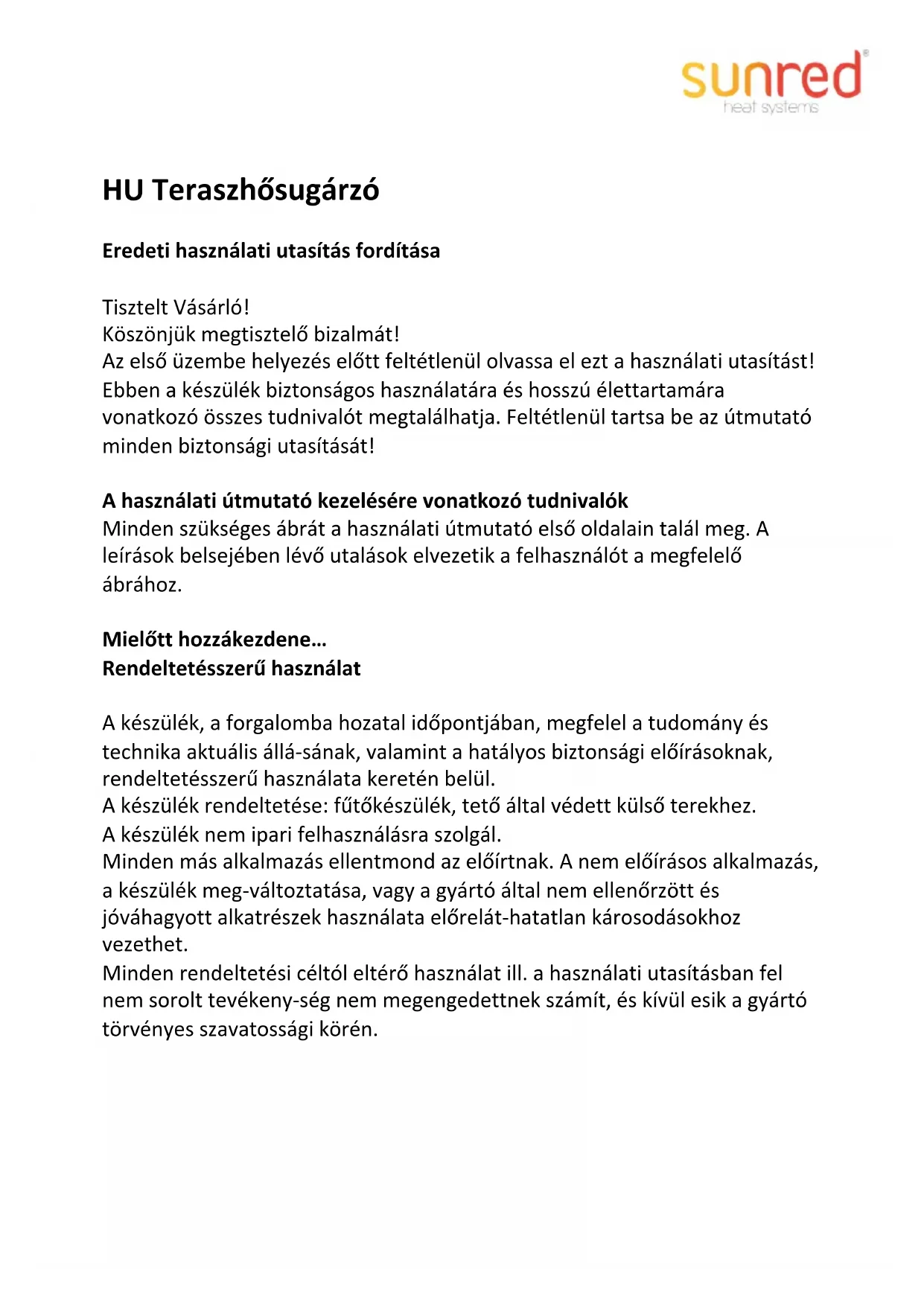- A készülék csak akkor kezelhető biztonságosan, ha az első használat előtt a kezelő elolvasta és megértette ezt a használati utasítást.