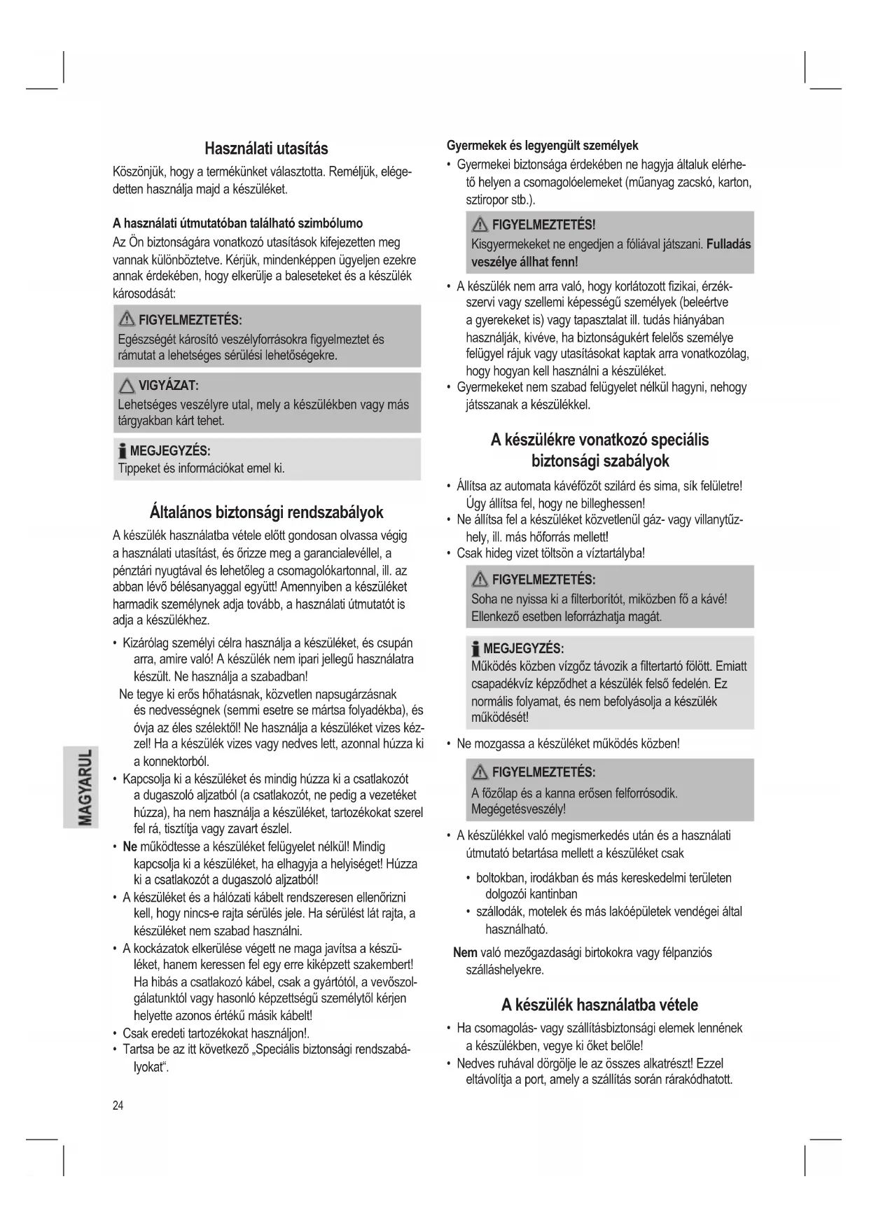 - Gyermekeket nem szabad felügyelet nélkül hagyni, nehogy játsszanak a készülékkel. A készülékre vonatkozó speciális biztonsági szabályok