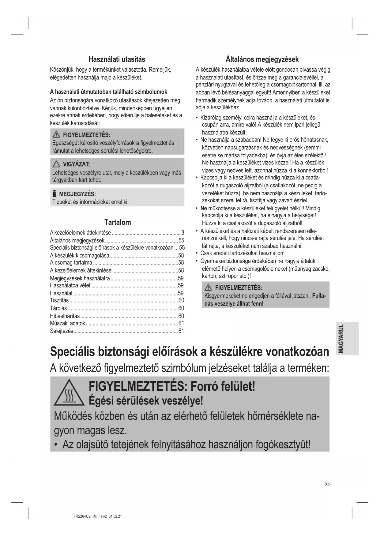 - Az olajsütő tetejének felnyitásához használjon fogókesztyűt!FR2264CB_IM_new2 04.02.21
