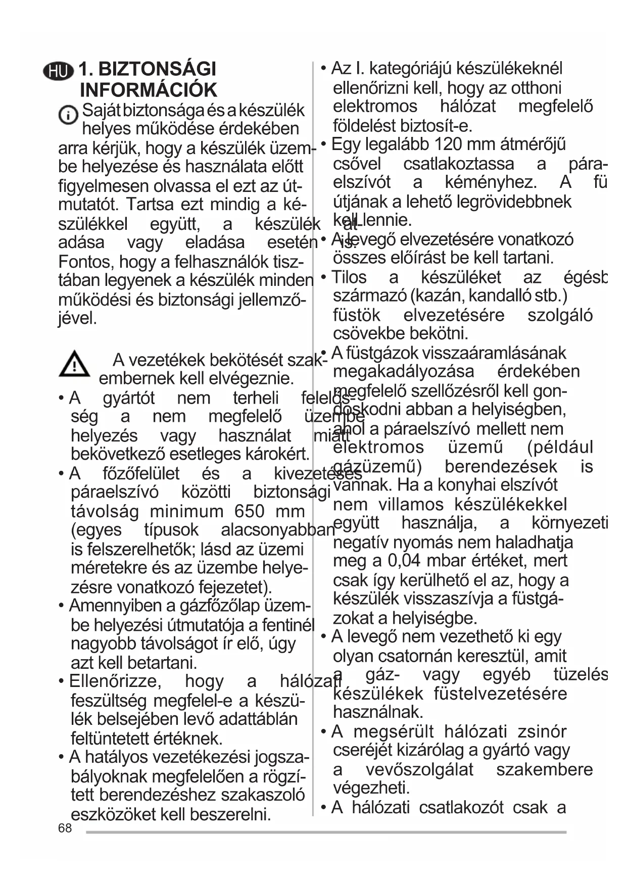 - A füstelvezetésre vonatkozó műszakiésbiztonságiteendőket illetőenfontosahelyihatóságok által előírt szabályok szigorú betartása. FIGYELMEZTETÉS: az el- szívóüzembehelyezéseelőtt elkelltávolítaniavédőfóliá- kat.