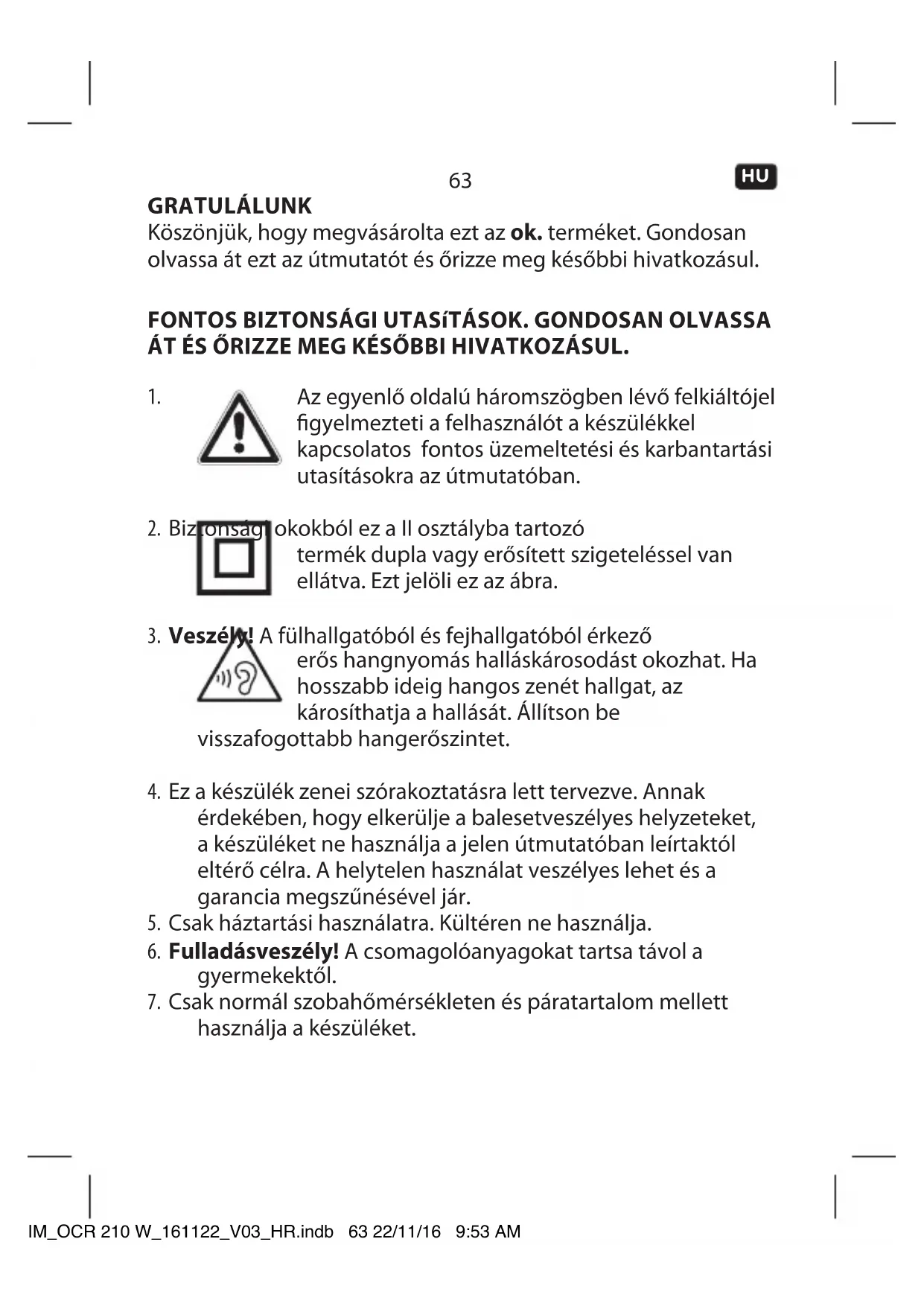 használja a készüléket. IM_OCR 210 W_161122_V03_HR.indb 63 22/11/16 9:53 AM64