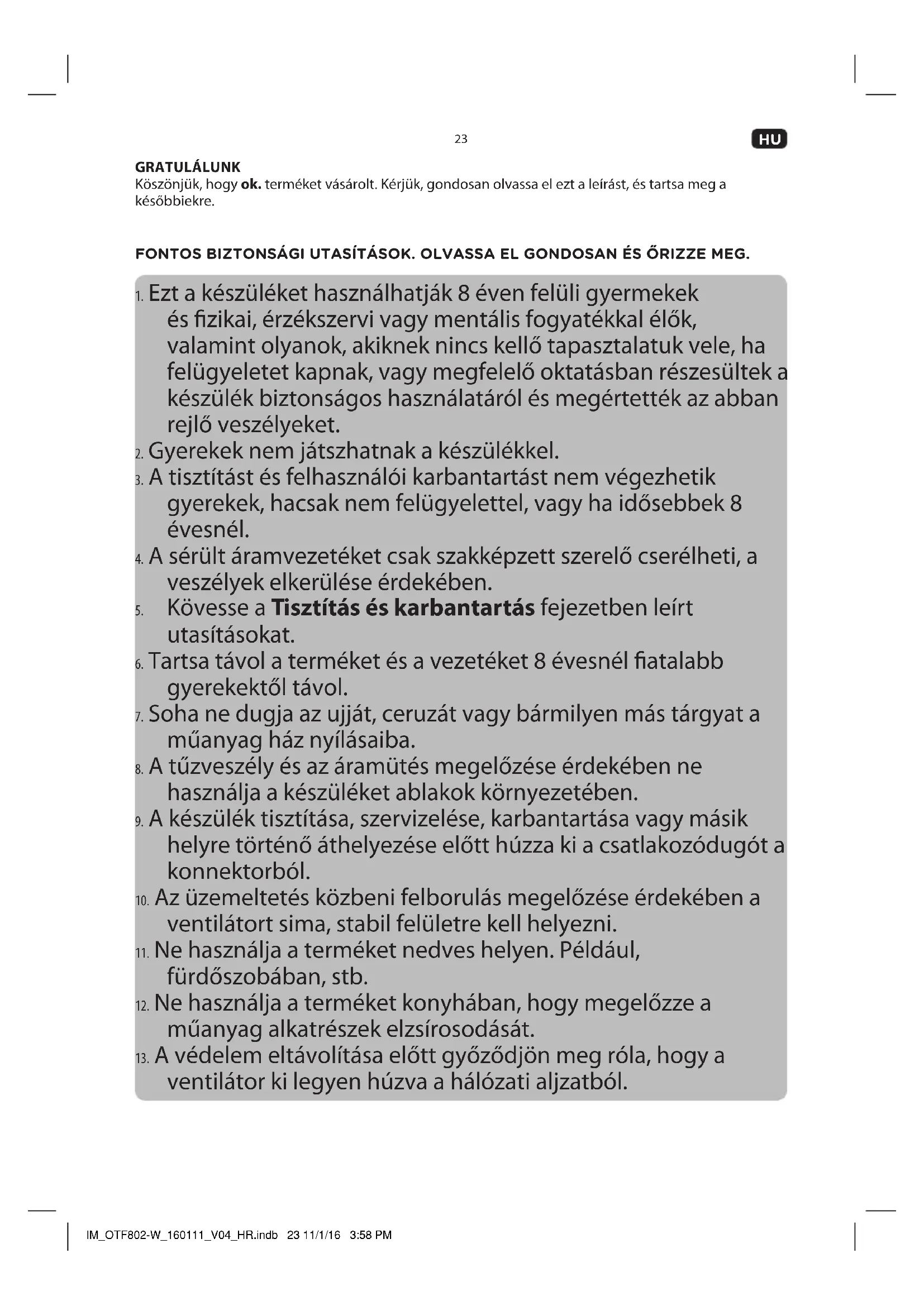 ventilátor ki legyen húzva a hálózati aljzatból. IM_OTF802-W_160111_V04_HR.indb 23 11/1/16 3:58 PM24