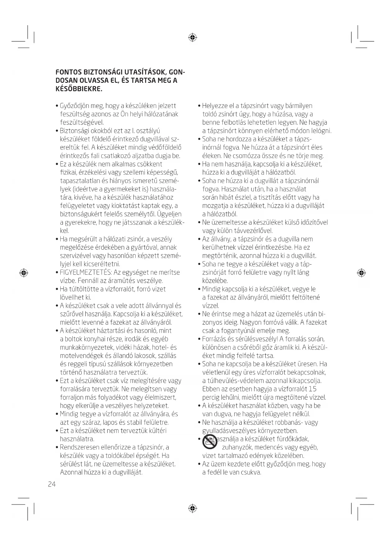 Ezt a keszüléketCsak viz melegitésere vagy forralására terveztuk. Csak a jelen utasítások betartásával szabad használni. A nem rendeltetesszerú hasznalat veszelyes,és megszüntet mindfulnesse szavatosságigényt. Tartsa be abiztonságitanácsokat.