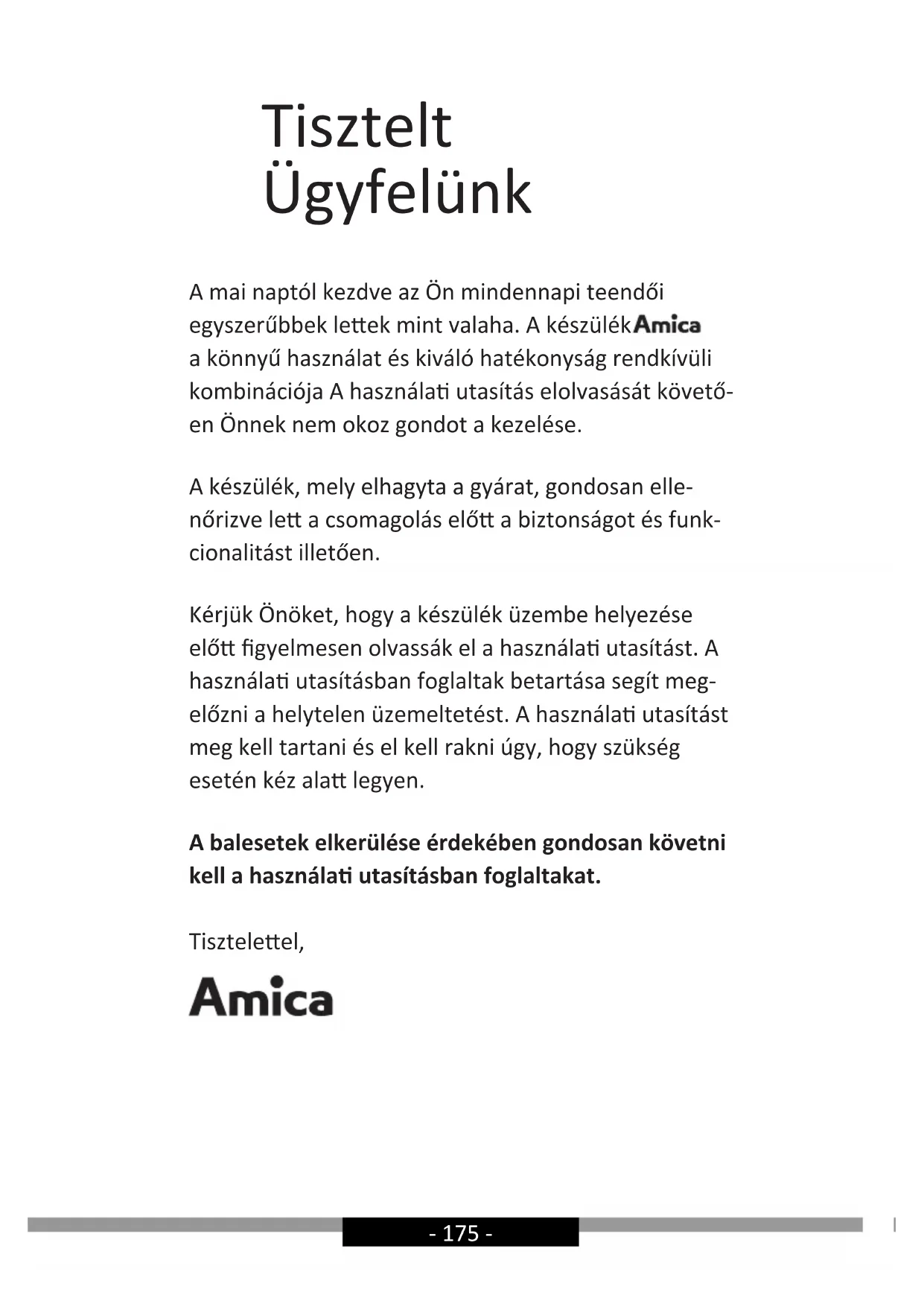 - Richtlijn RoHS 2011/65/EC en over de certi cering en de conformiteitsverklaring voor orga- nen die toezicht op de markt houden beschikt.- 175 - Tisztelt Ügyfelünk A mai naptól kezdve az Ön mindennapi teendői egyszerűbbek leek mint valaha. A készülék a könnyű használat és kiváló hatékonyság rendkívüli kombinációja A használa utasítás elolvasását követő- en Önnek nem okoz gondot a kezelése. A készülék, mely elhagyta a gyárat, gondosan elle- nőrizve le a csomagolás elő a biztonságot és funk- cionalitást illetően. Kérjük Önöket, hogy a készülék üzembe helyezése elő gyelmesen olvassák el a használa utasítást. A használa utasításban foglaltak betartása segít meg- előzni a helytelen üzemeltetést. A használa utasítást meg kell tartani és el kell rakni úgy, hogy szükség esetén kéz ala legyen. A balesetek elkerülése érdekében gondosan követni kell a használa utasításban foglaltakat. Tiszteleel,- 176 -