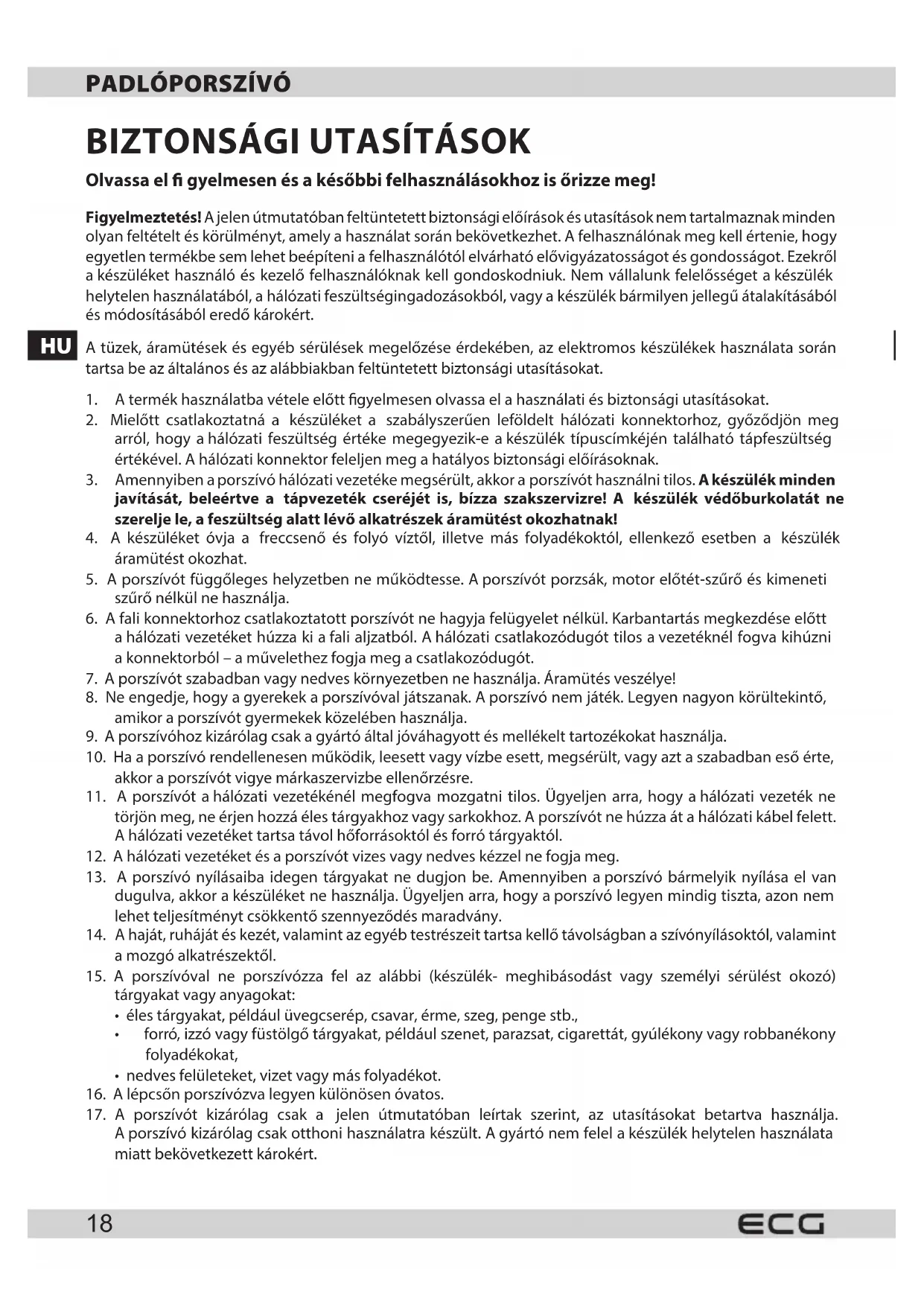 A keszülk hasznalati utmutatója a www.ecg-electro.eu oldalon található. A szöveg és a muszaki paraméterek megvaltoztatásnak a joga fenntartva.