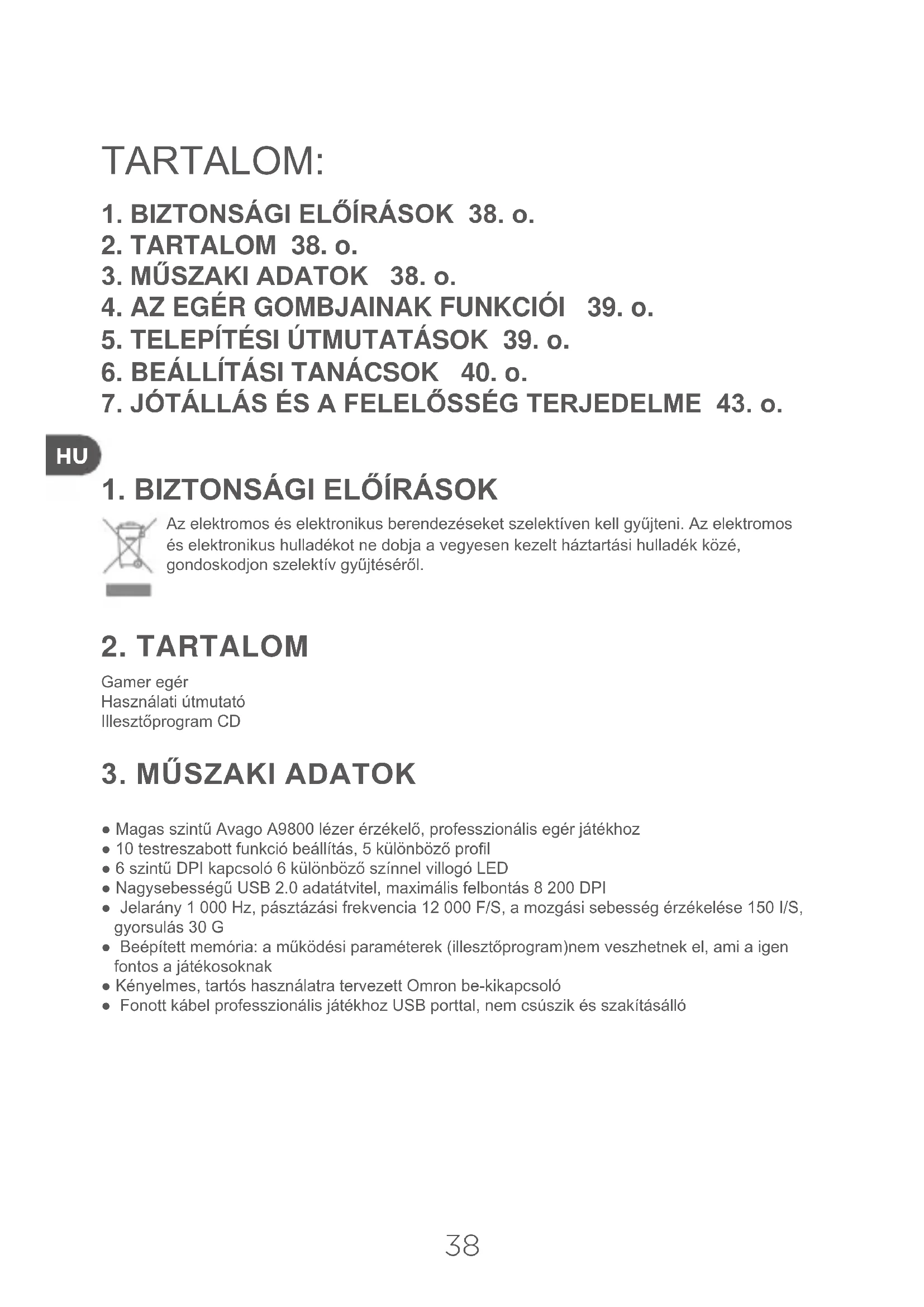| Biztons g | Megfelel az elektronikus eszk z k biztons gi szabv nyainak, biztons gos haszn lat |