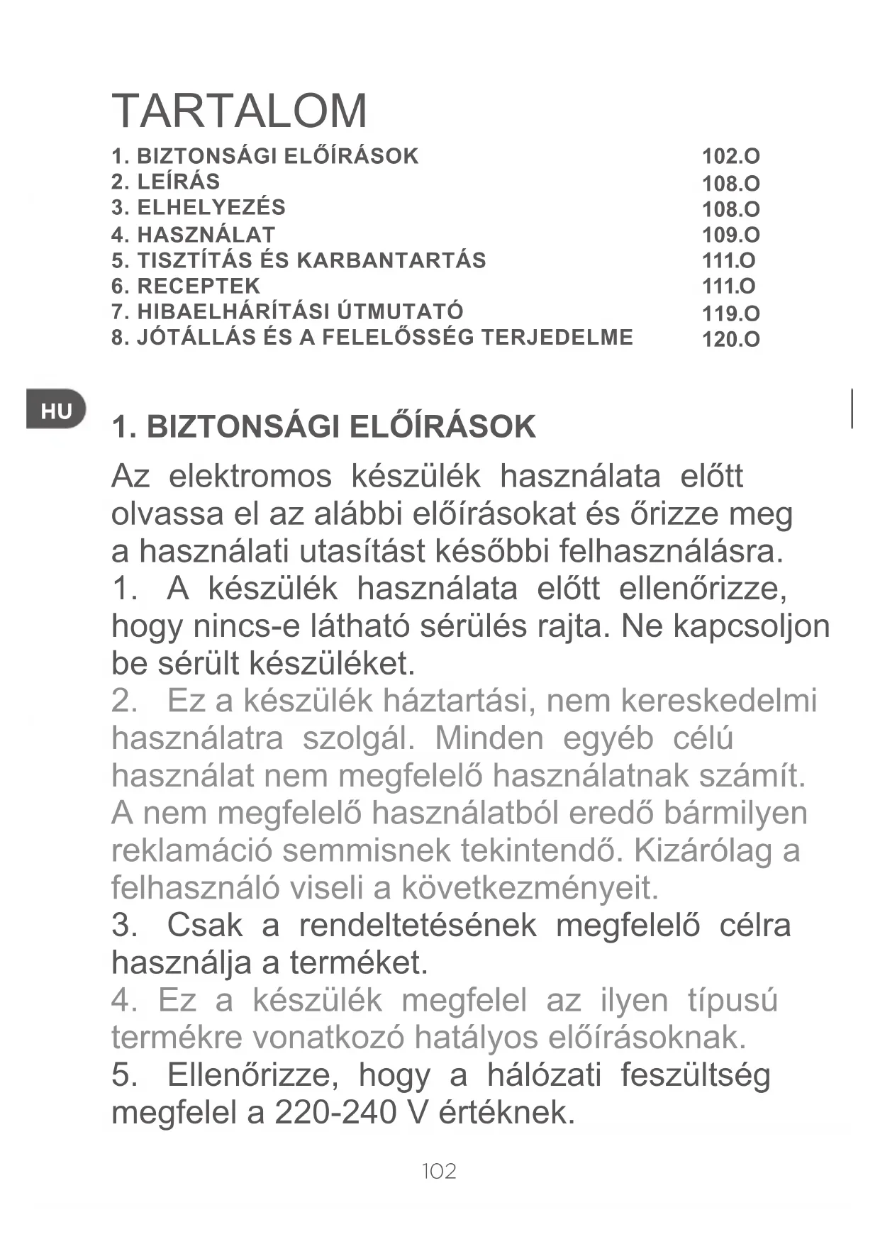 megfelel a 220-240 V értéknek. 102.O 108.O 108.O 109.O 111.O 111.O 119.O 120.O103