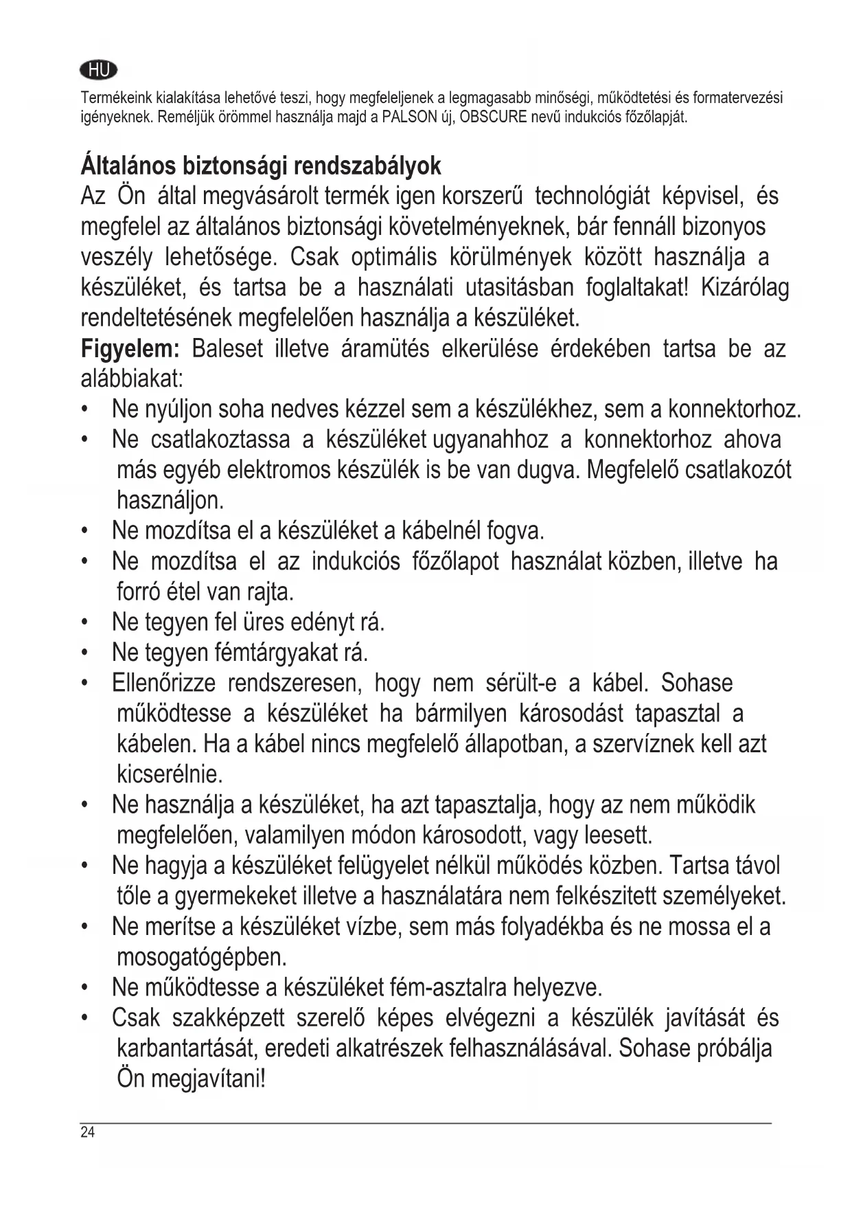 HASZNÁLATI ÚTMUTATÓ Obscure PALSON