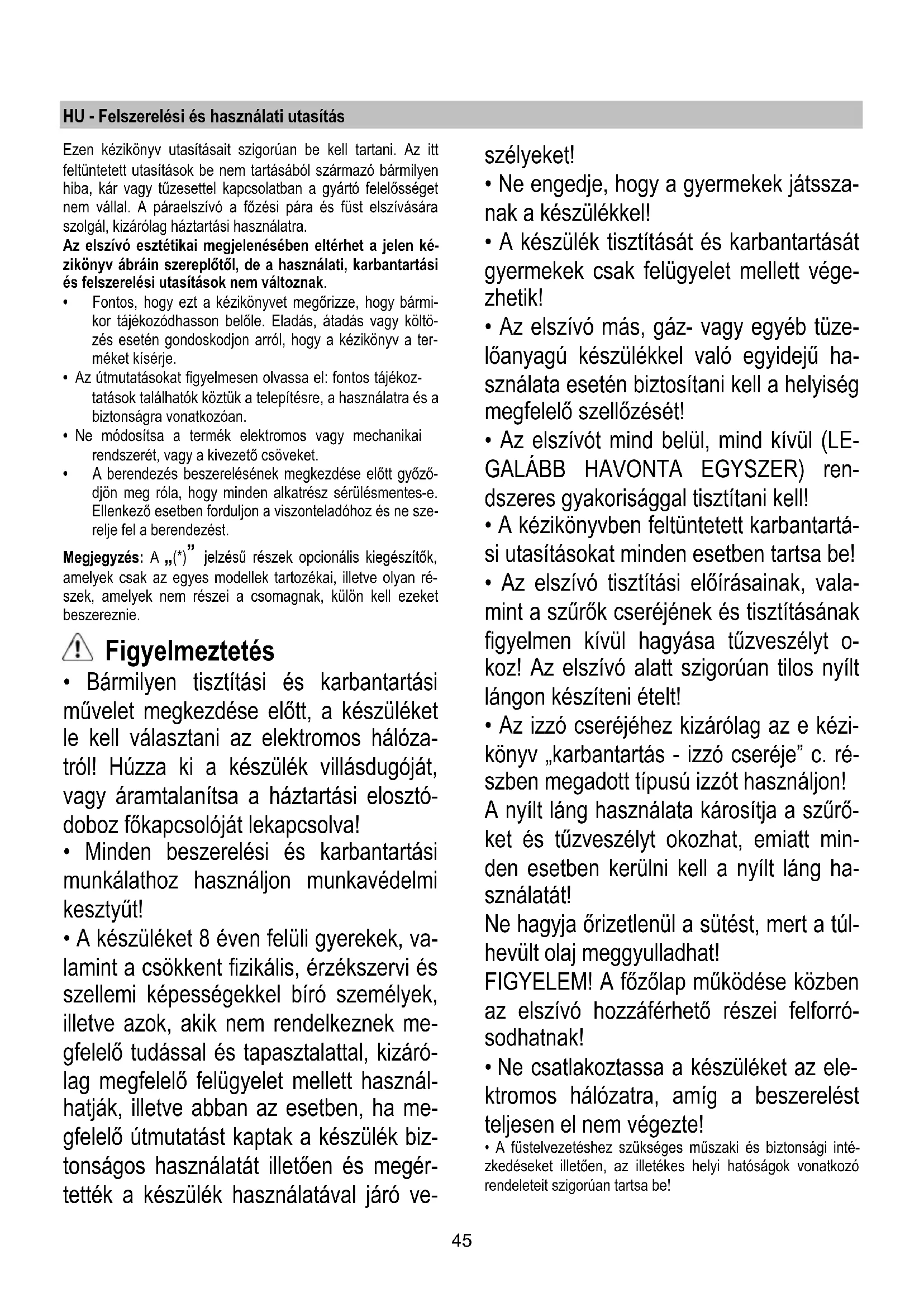 - Az elszívót mind belül, mind kívül (LE- GALÁBB HAVONTA EGYSZER) ren- dszeres gyakorisággal tisztítani kell!