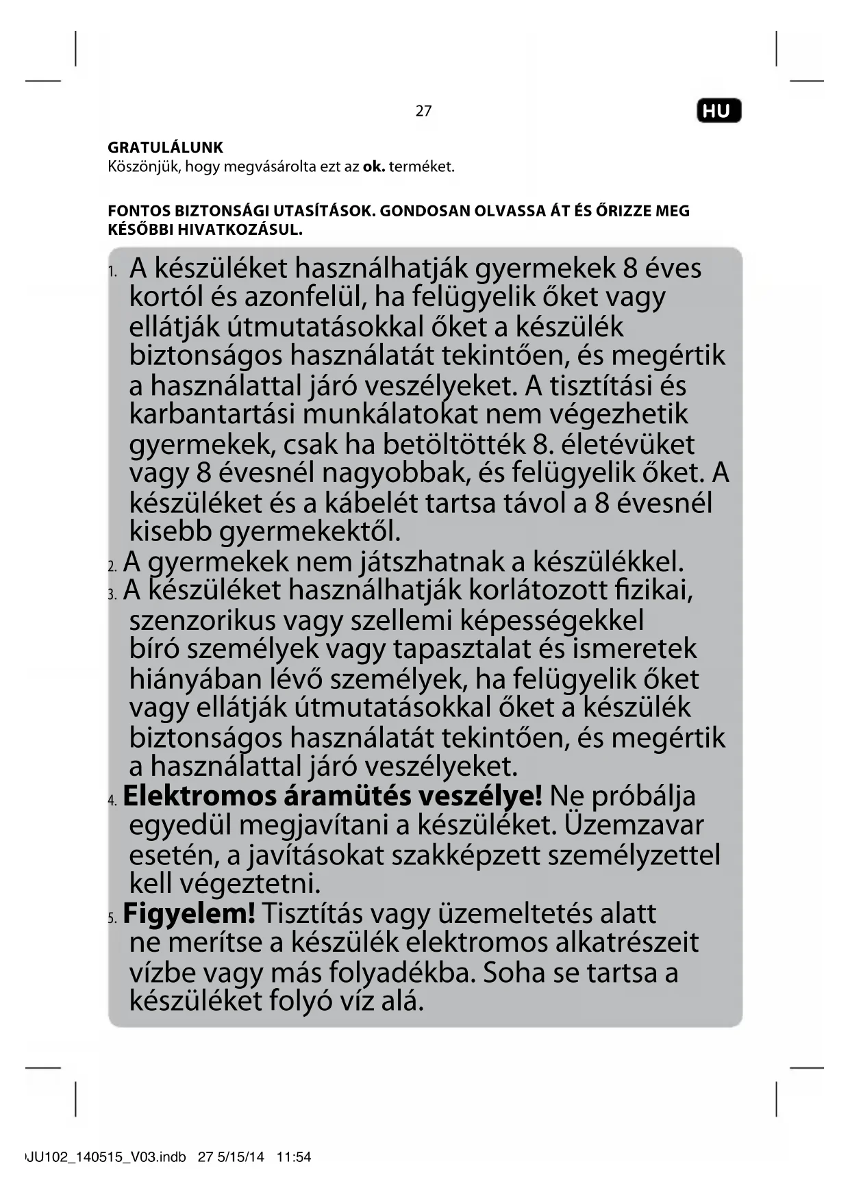 Találja meg az eszköz kézikönyvét ingyenesen OJU 102 OK PDF formátumban.