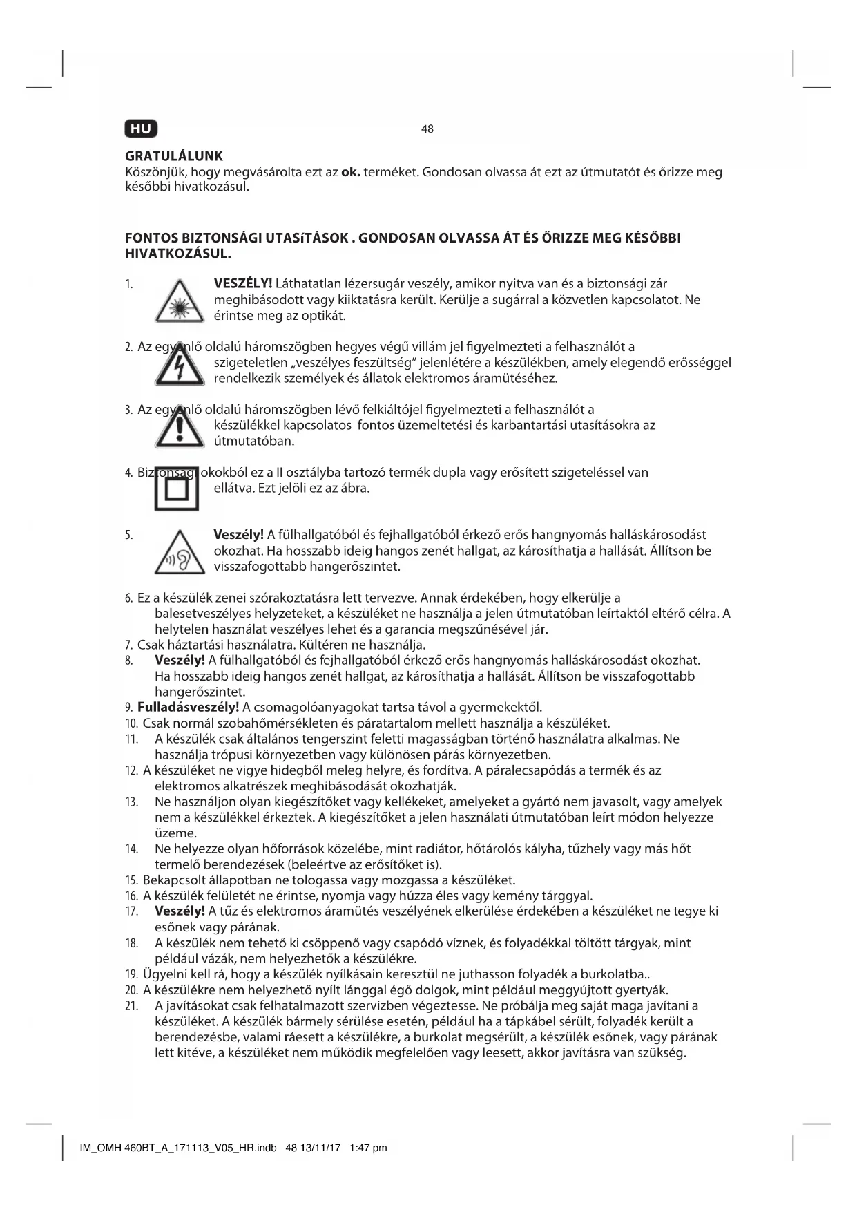 Találja meg az eszköz kézikönyvét ingyenesen OMH 460BTB OK PDF formátumban.