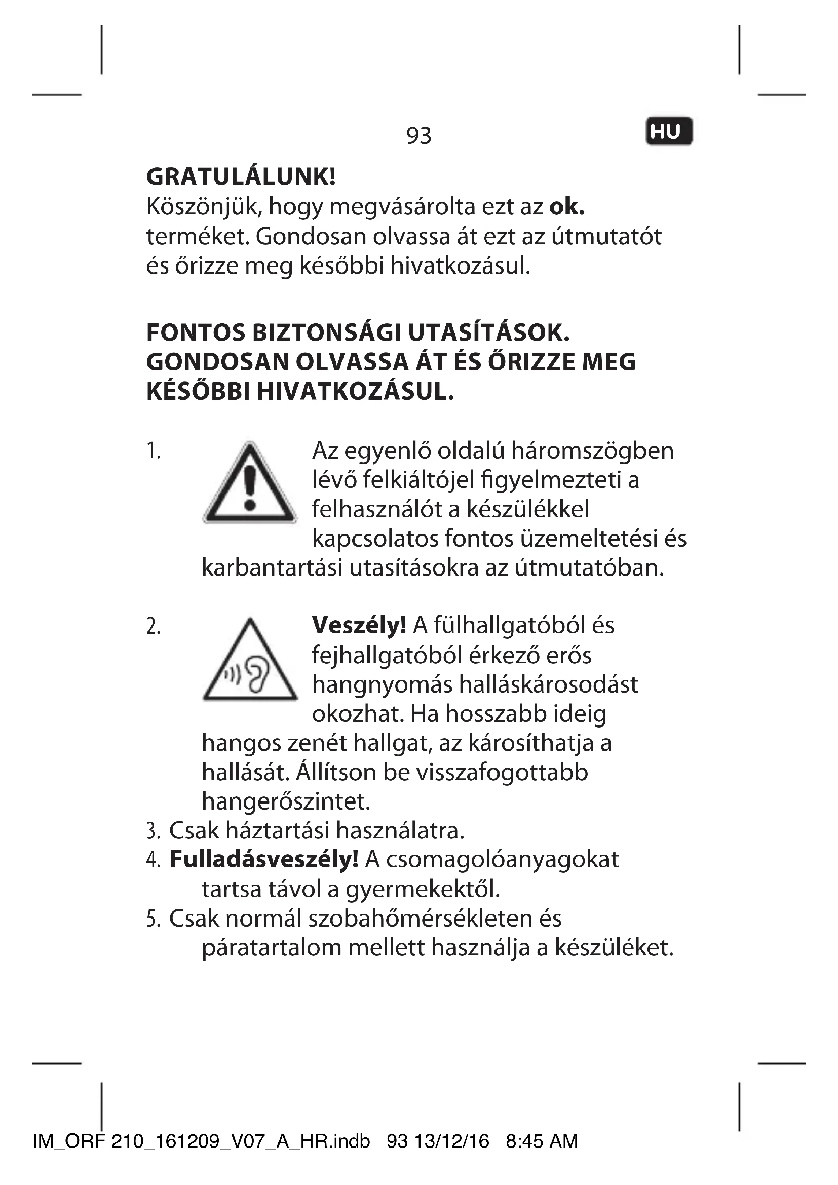 páratartalom mellett használja a készüléket. IM_ORF 210_161209_V07_A_HR.indb 93 13/12/16 8:45 AM94