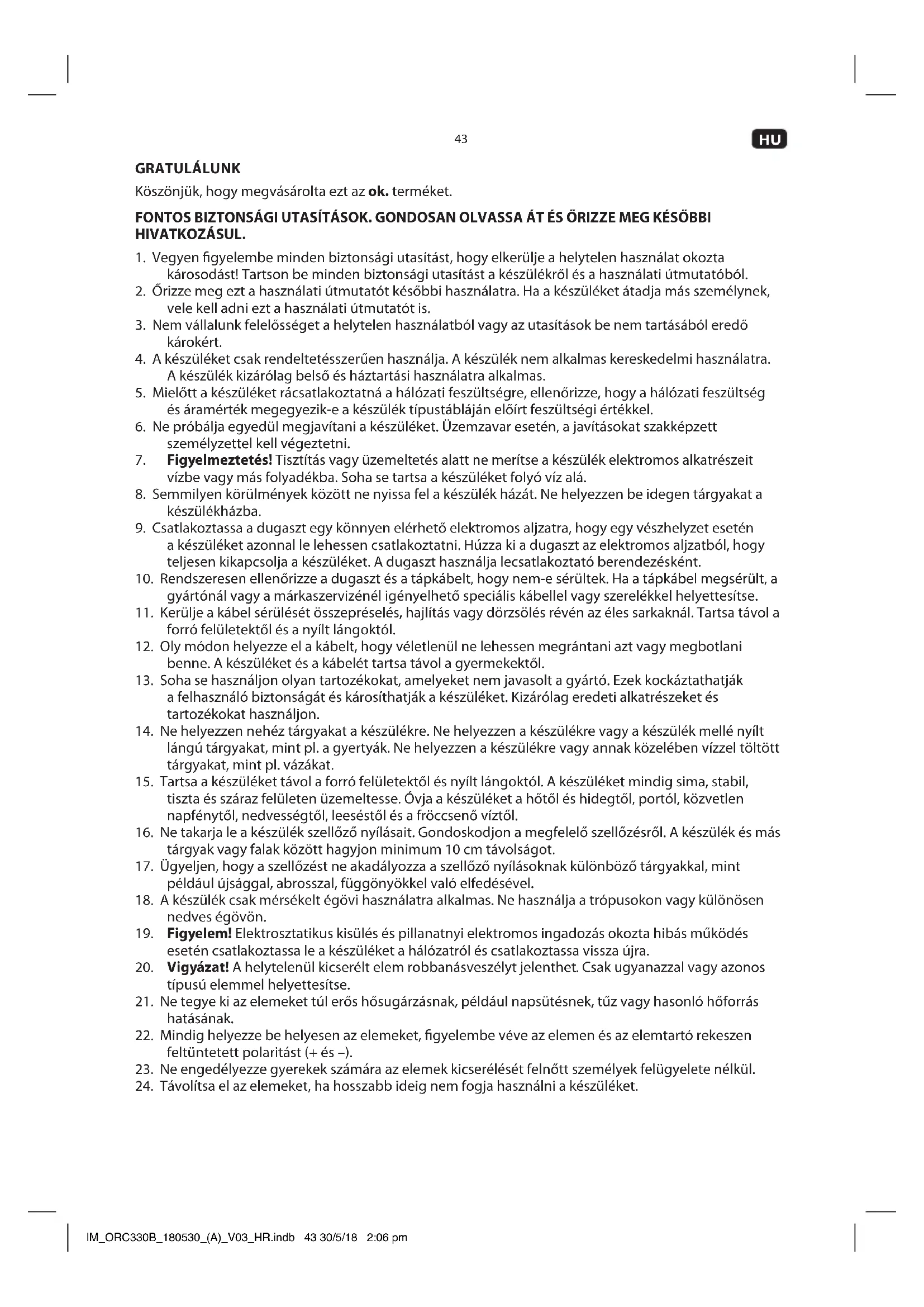 Találja meg az eszköz kézikönyvét ingyenesen ORC 330B OK PDF formátumban.