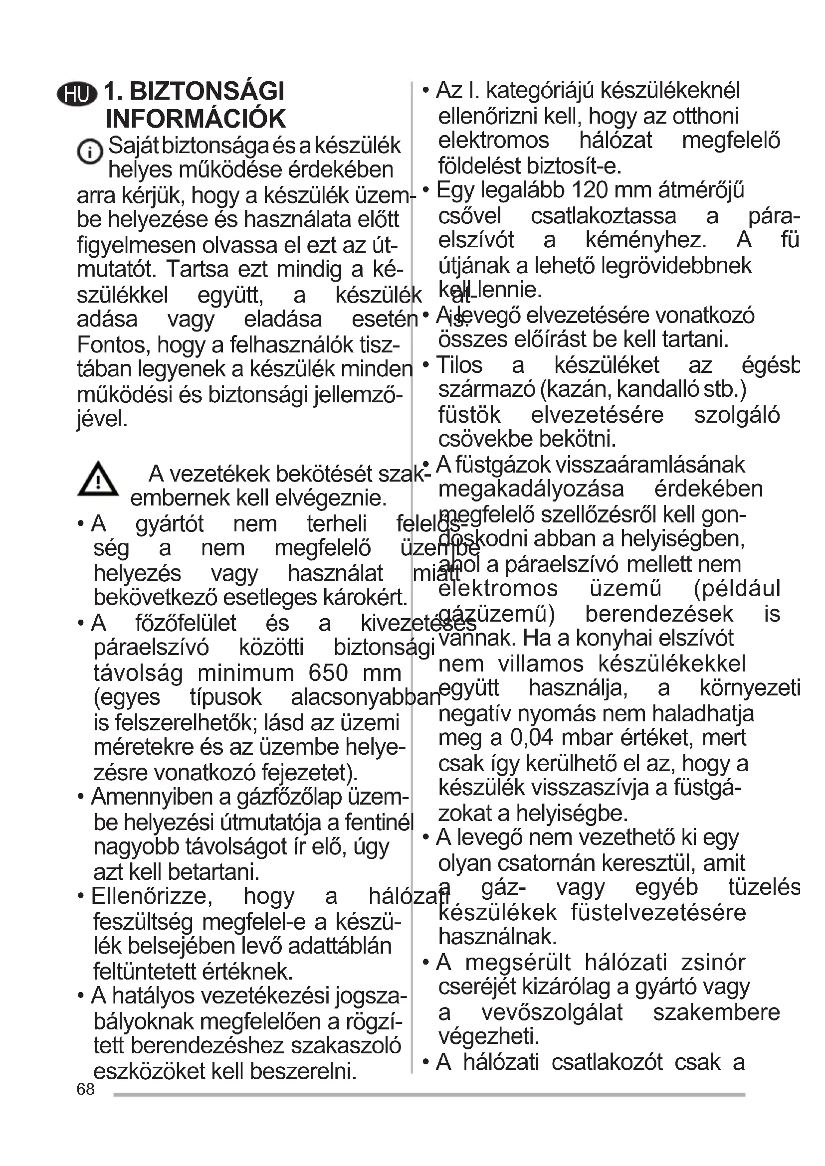 - Alevegőelvezetésérevonatkozó összeselőírástbekelltartani.