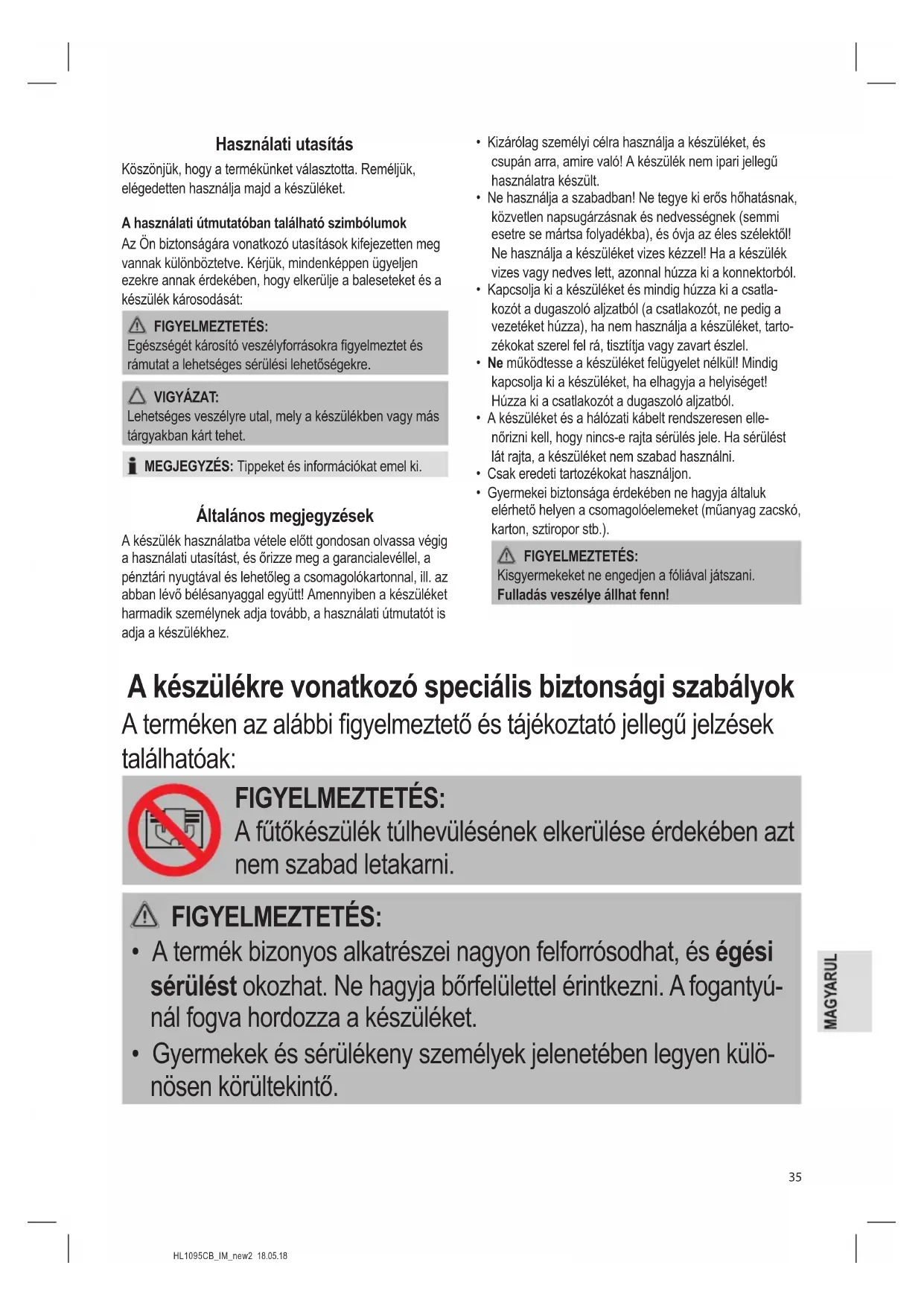 | Biztons e1g | T fal e9g e9sv e9delmi funkci f3, automatikus kikapcsol e1s felborul e1s eset e9n. |