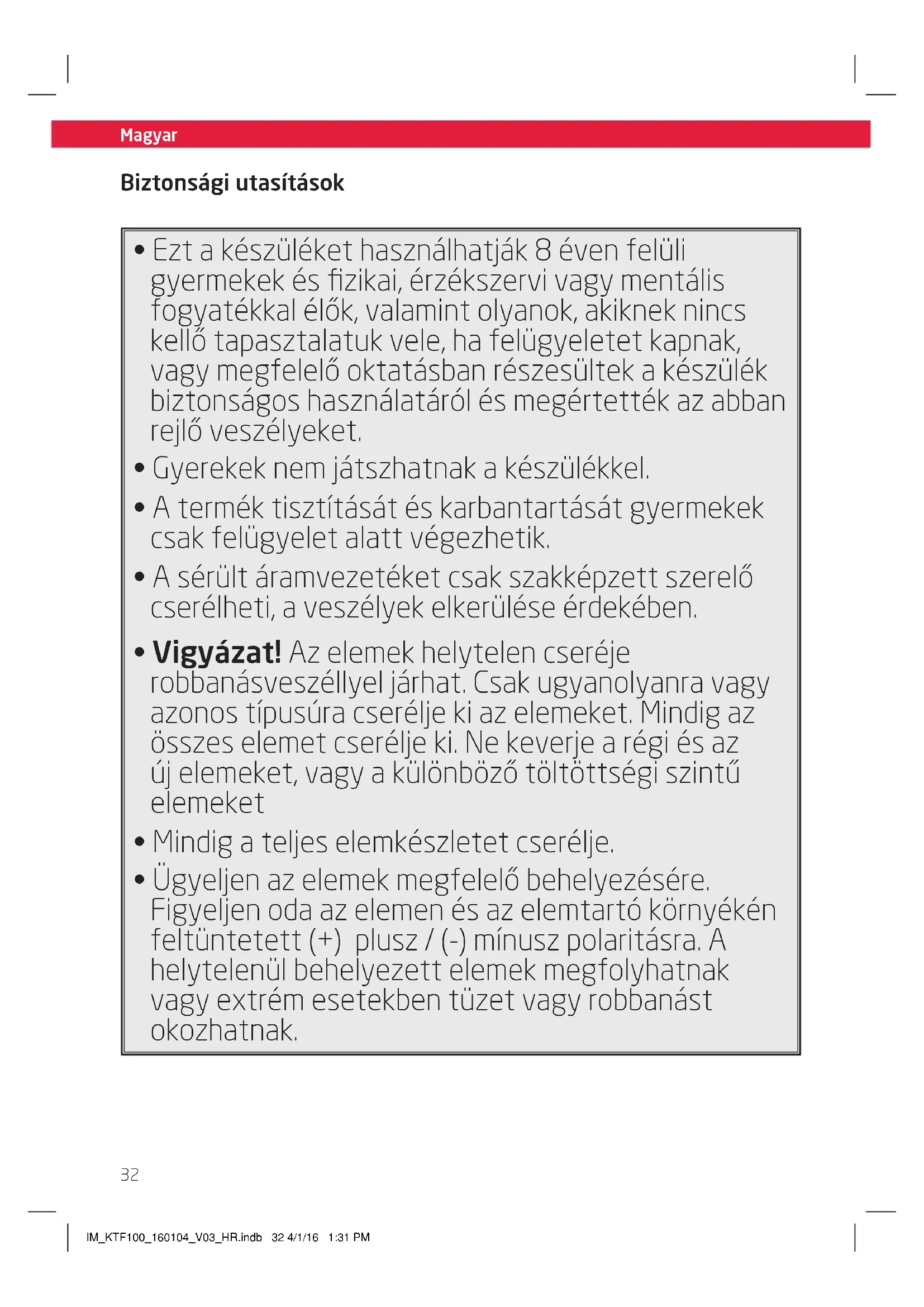 | Biztons g | T lhev s elleni v delm vel ell tva, ne haszn lja v z k zel ben. |