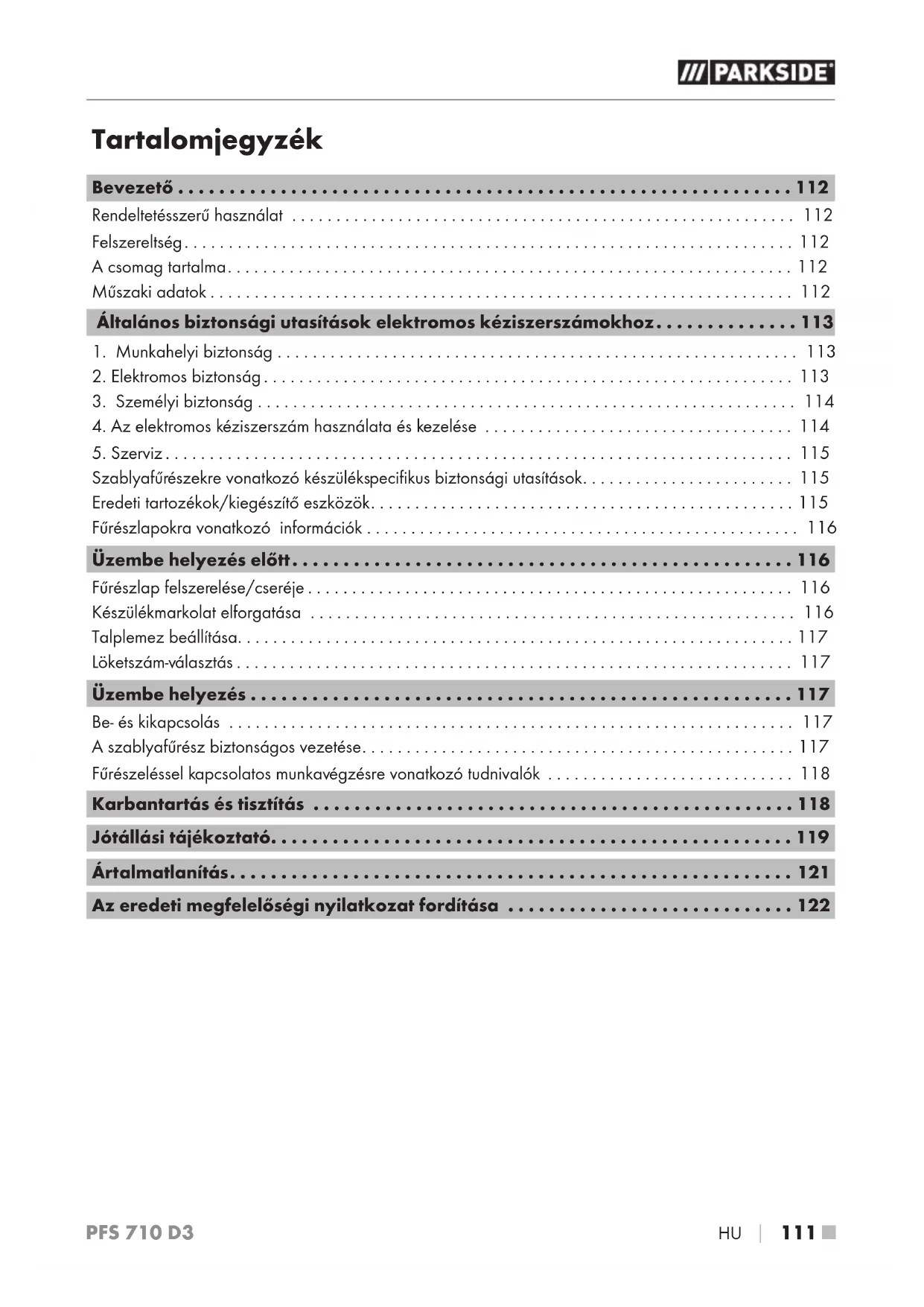 - Az eredeti megfelelőségi nyilatkozat fordítása PFS 710 D3 ■ 112 p. 122