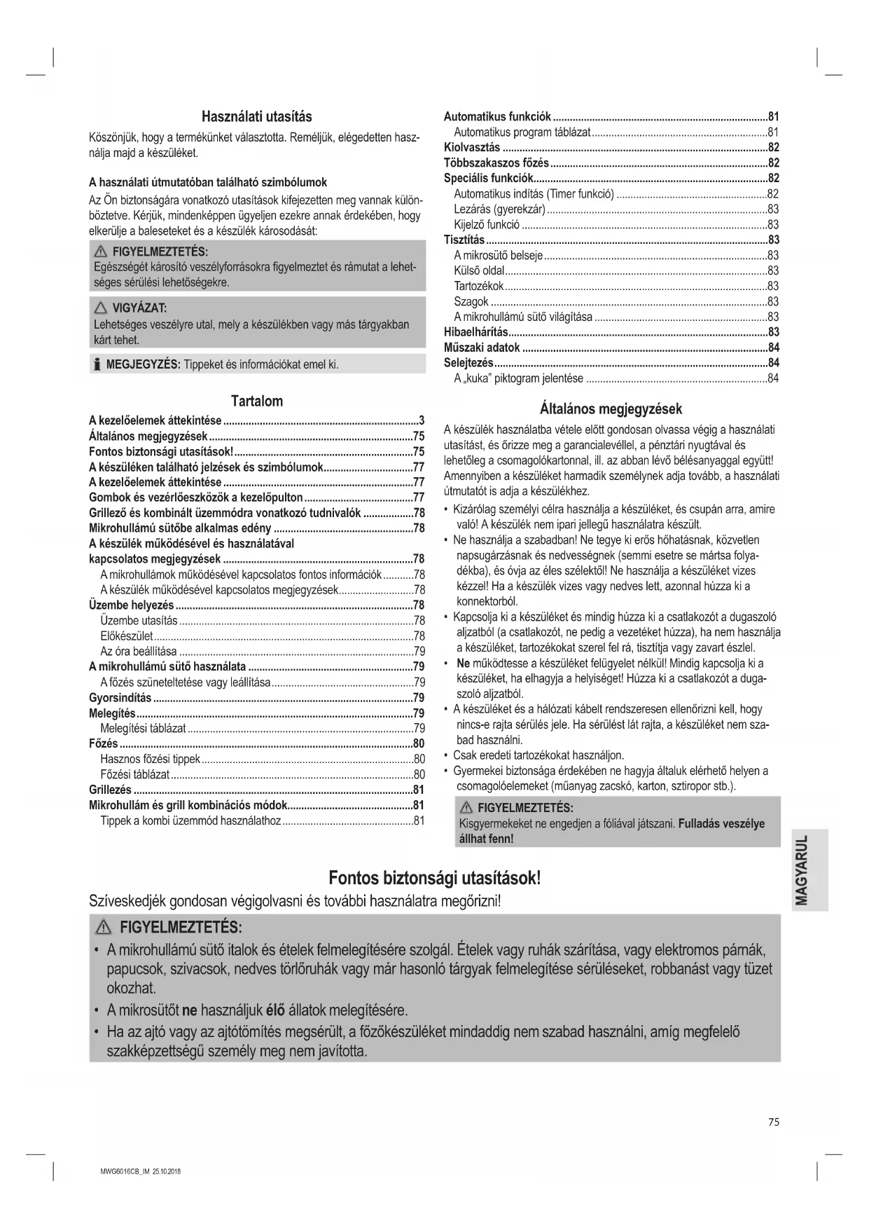- A „kuka” piktogram jelentése Általános megjegyzések A készülék használatba vétele előtt gondosan olvassa végig a használati utasítást, és őrizze meg a garancialevéllel, a pénztári nyugtával és lehetőleg a csomagolókartonnal, ill. az abban lévő bélésanyaggal együtt! Amennyiben a készüléket harmadik személynek adja tovább, a használati útmutatót is adja a készülékhez. p. 84