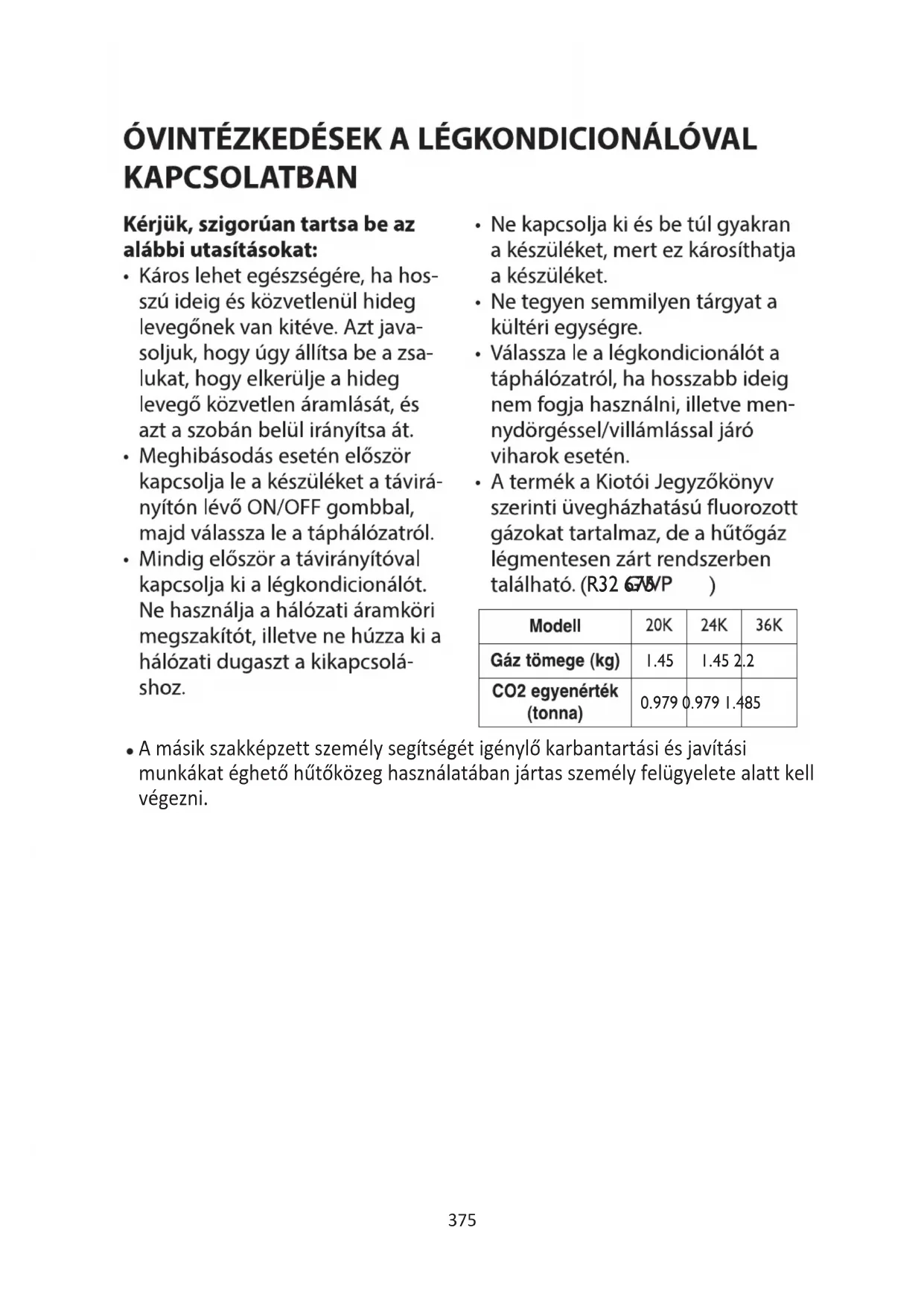 A másik szakképzett személy segítségét igénylő karbantartási és javítási munkákat éghető hűtőközeg használatában jártas személy felügyelete alatt kell végezni.376 BIZTONSÁGI UTASÍTÁSOK A SPECIÁLIS