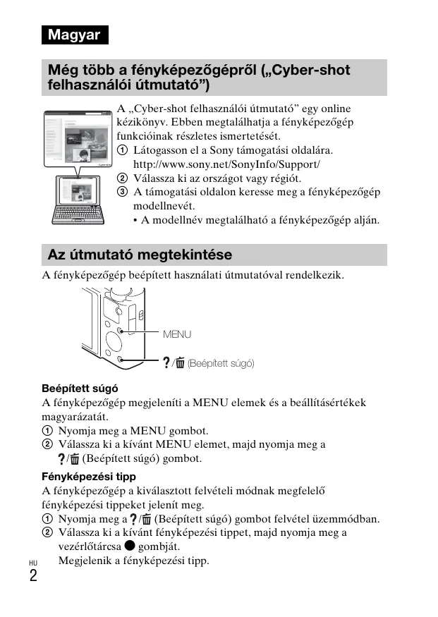 - A modellnév megtalálható a fényképezőgép alján. Az útmutató megtekintése A fényképezőgép beépített használati útmutatóval rendelkezik. MENU