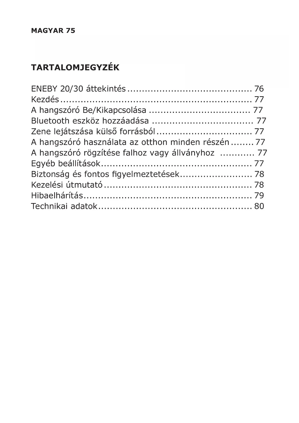 - Potenza di uscita radio 4 dBm 9 dBmMAGYAR 75 TARTALOMJEGYZÉK ENEBY 20/30 áttekintés p. 76
