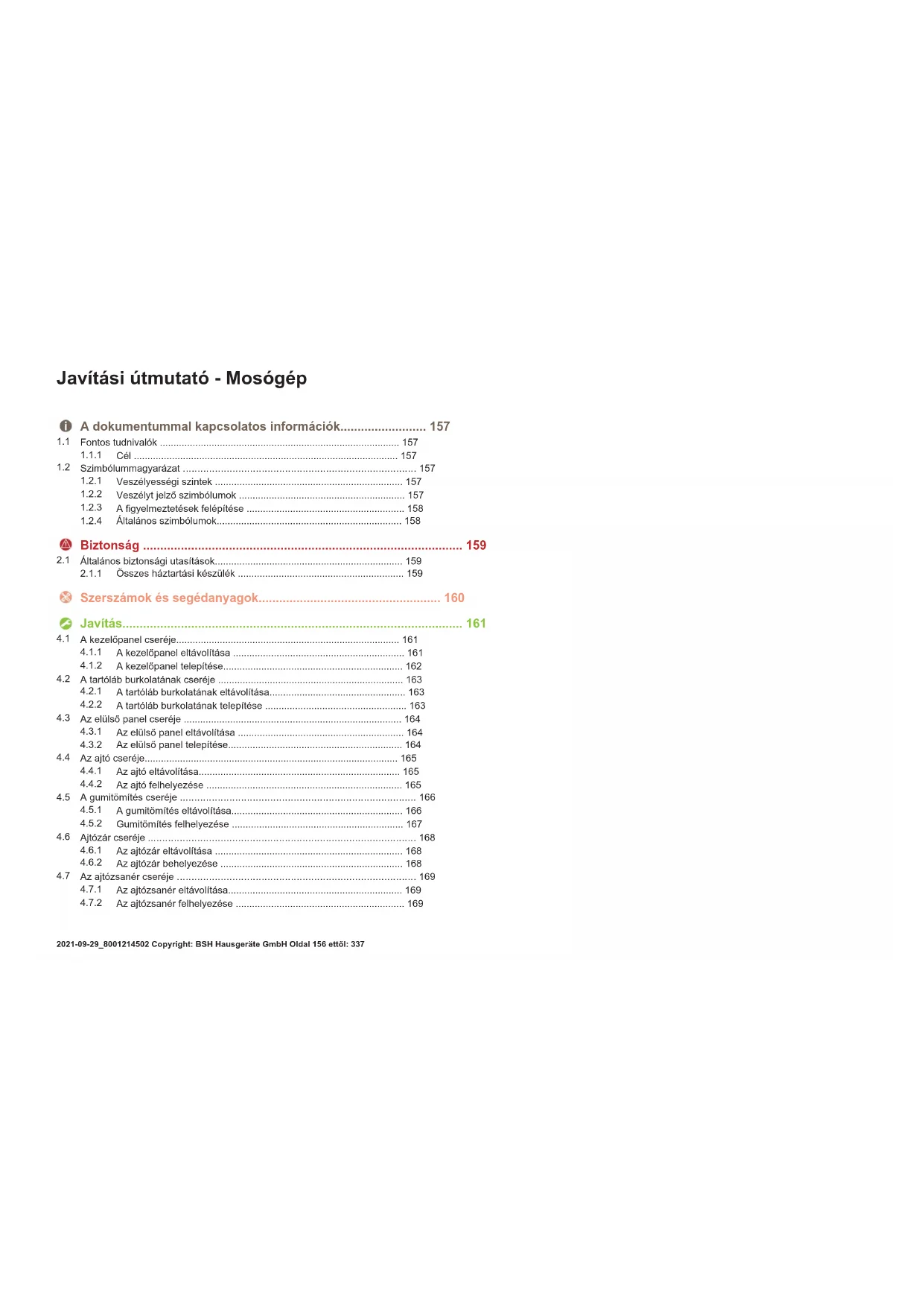 Az ajtózsanér felhelyezése ..............................................................169 Javítási útmutató-Mosógép 2021-09-29_8001214502 Copyright: BSH Hausgeräte GmbH Oldal156ettől:337A dokumentummal kapcsolatos információk