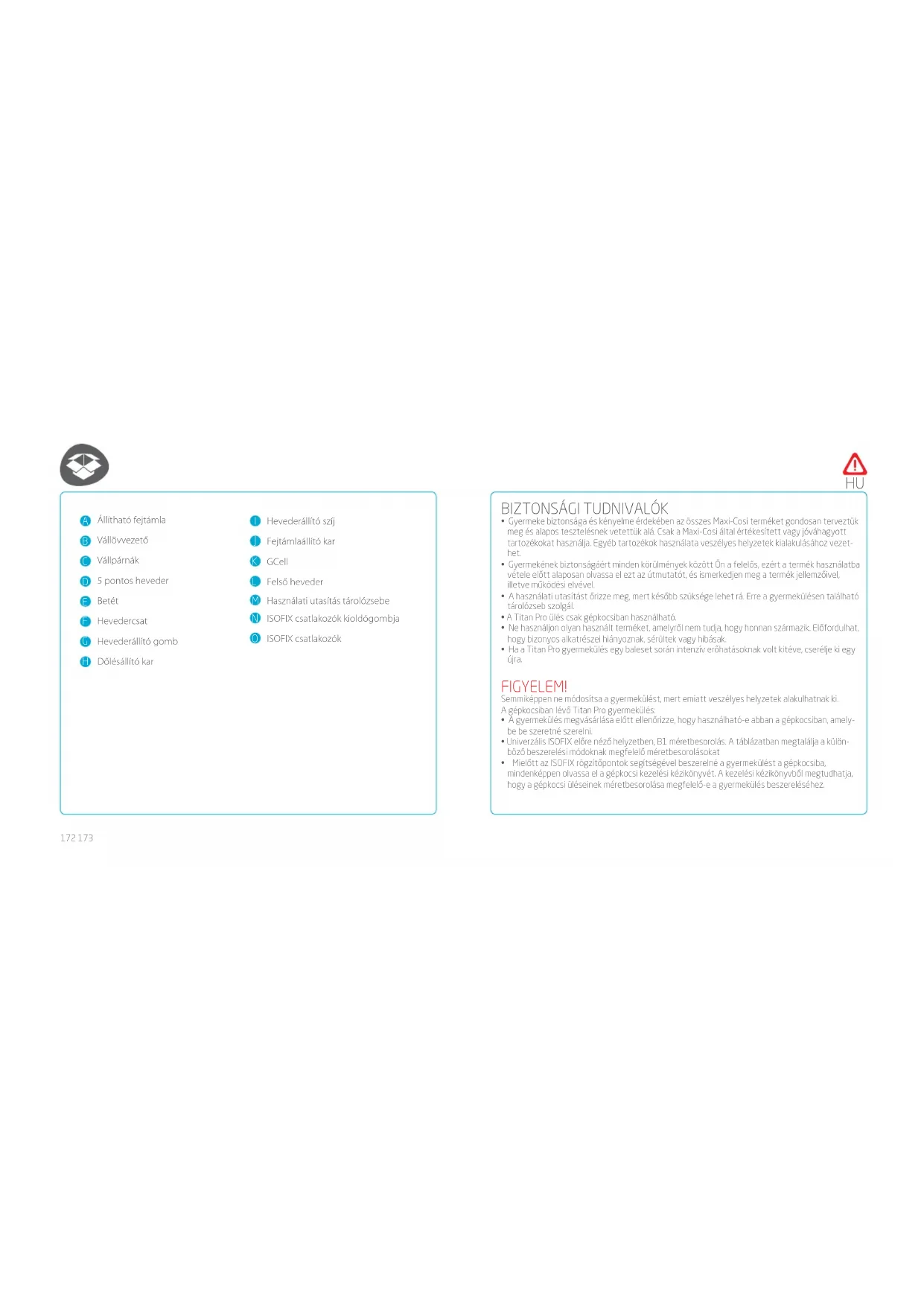 - Ha a Maxi-Cosi Titan Pro gyermekülést egy baleset során intenzív erőhatásoknak volt kitéve, cserélje ki egy újra. Gyermekének biztonságát az ülés ezután már nem garantálja.