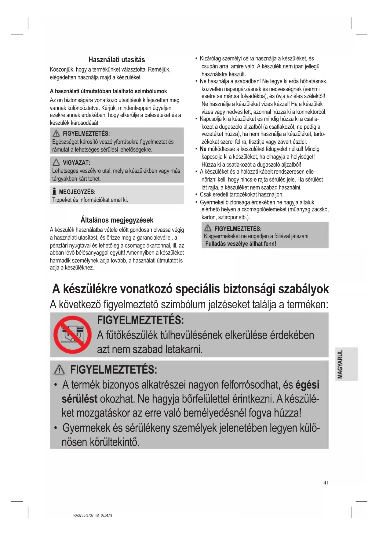 - Gyermekek és sérülékeny személyek jelenetében legyen külö- nösen körültekintő.RA3735-3737_IM 08.04.19