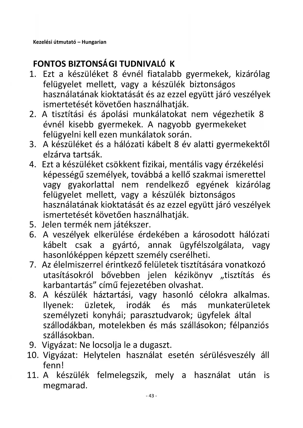 1. Ezt a készüléket 8 évnél fiatalabb gyermekek, kizárólag