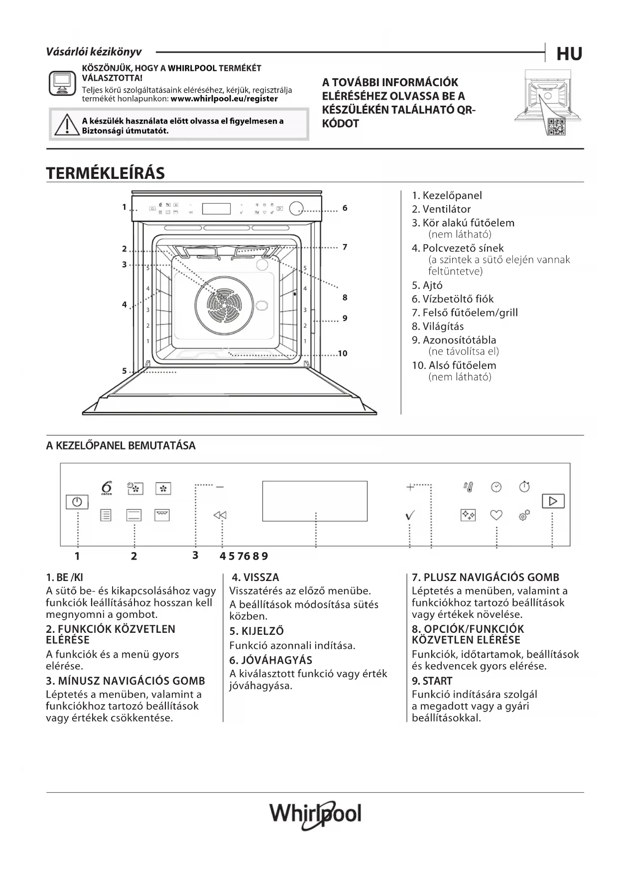 - Voit vaihtoehtoisesti ottaa yhteyttä asiakaspalveluun (katso numero takuukirjasesta). Kun otat yhteyttä asiakaspalveluun, ilmoita tuotteen arvokilven koodit. 400011669605 REV. AHU Vásárlói kézikönyv KÖSZÖNJÜK, HOGY A WHIRLPOOL TERMÉKÉT VÁLASZTOTTA! Teljes körű szolgáltatásaink eléréséhez, kérjük, regisztrálja termékét honlapunkon: www.whirlpool.eu/register