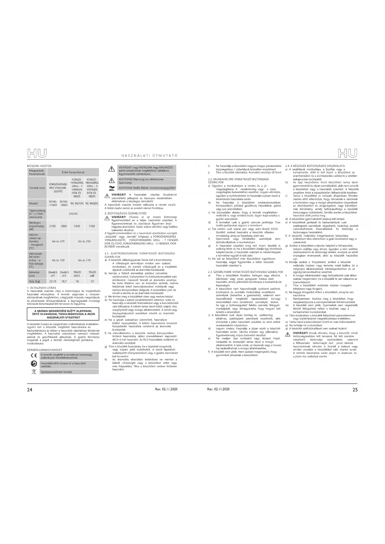 Találja meg az eszköz kézikönyvét ingyenesen RCHG9WO Royal Catering PDF formátumban.