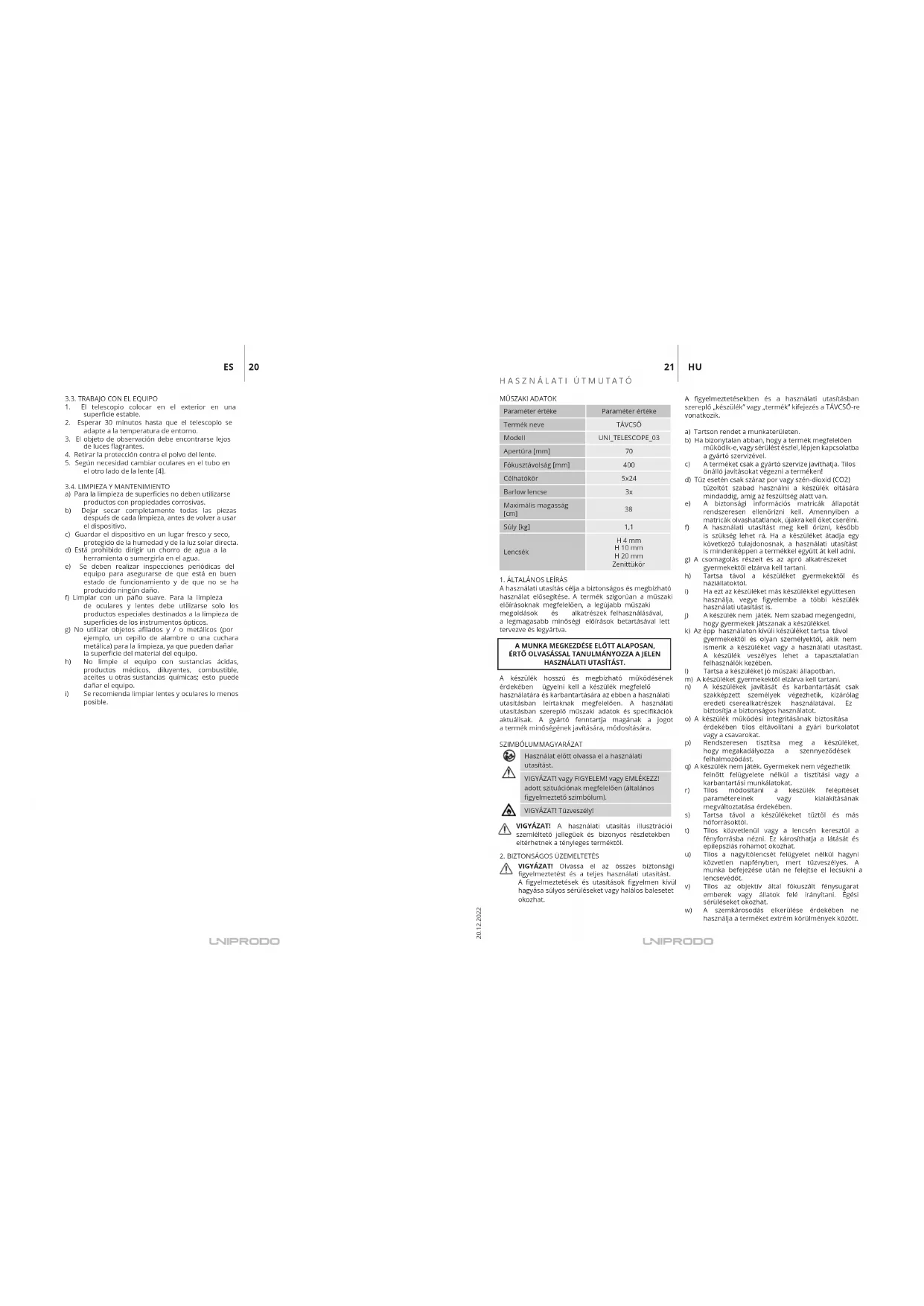 HASZNÁLATI ÚTMUTATÓ UNI_TELESCOPE_03 Uniprodo
