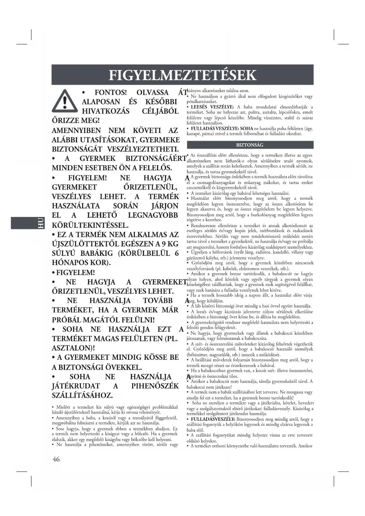 - A terméket otthoni környezetbe való használatra tervezték. Amikor egyéb közlekedési eszközön utazik (pl. vonat, metró, busz, repülőgép, stb.) ne hagyja a gyermeket a termékbe. HAGYOMÁNYOS GYÁRTÓI JÓTÁLLÁS