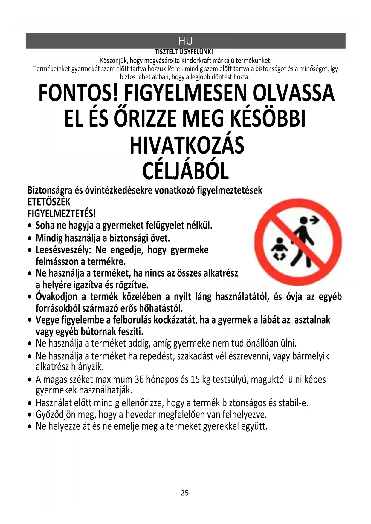 Leesésveszély: Ne engedje, hogy gyermeke felmásszon a termékre.