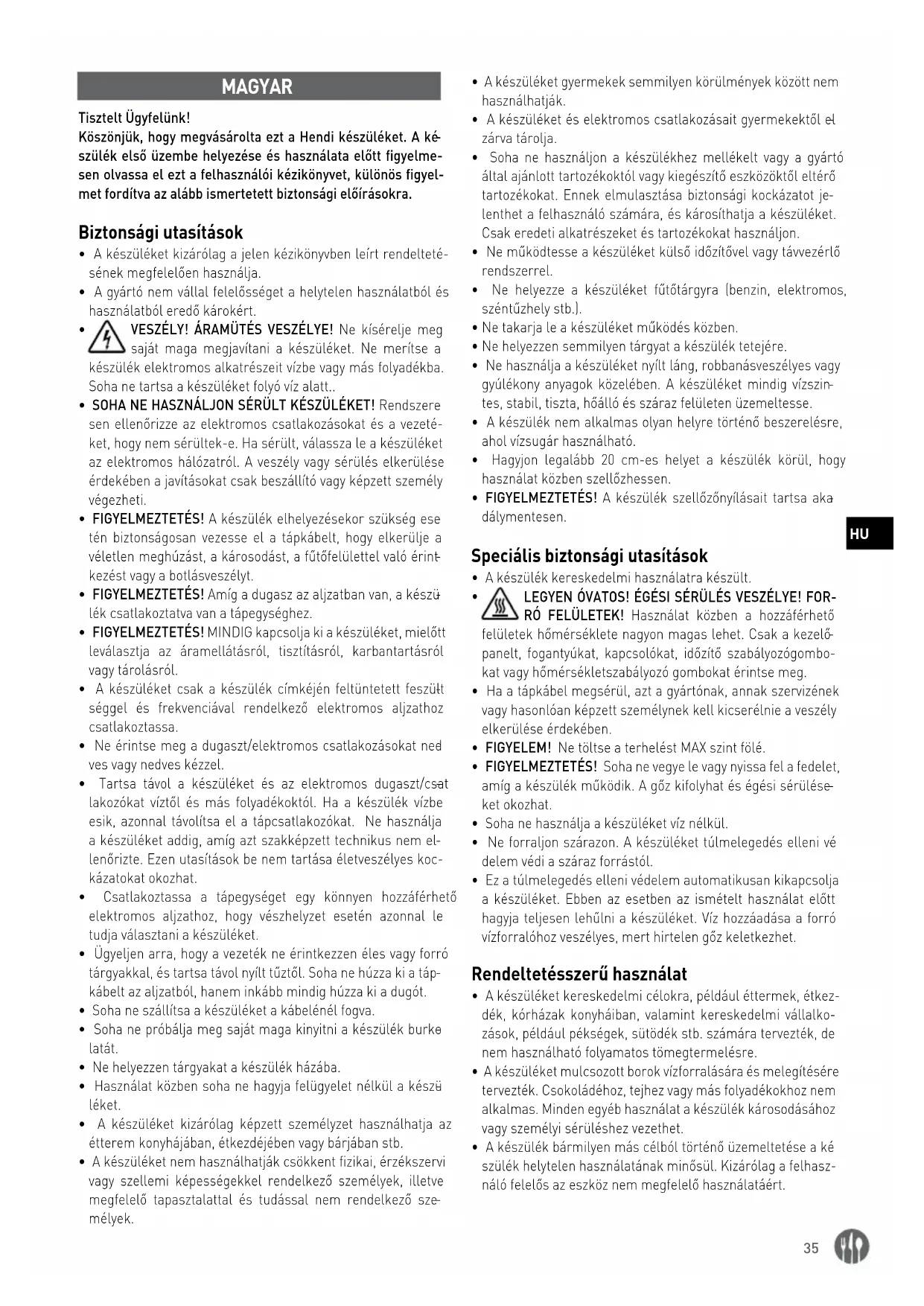 MAGYAR Tisztelt Ügyfelünk! Köszönjük, hogy megvásárolta ezt a Hendi készüléket. A ké