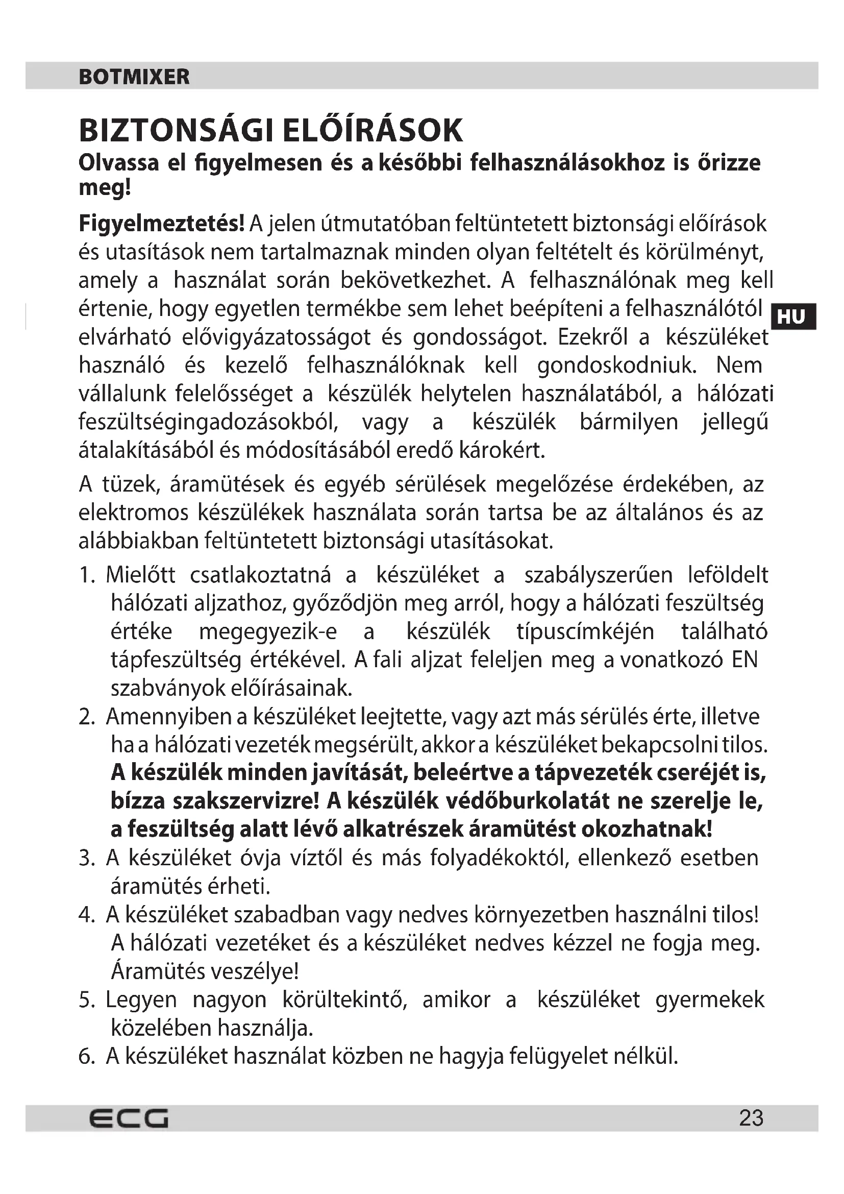 RM 750 - Botmixer ECG - Ingyenes használati útmutató