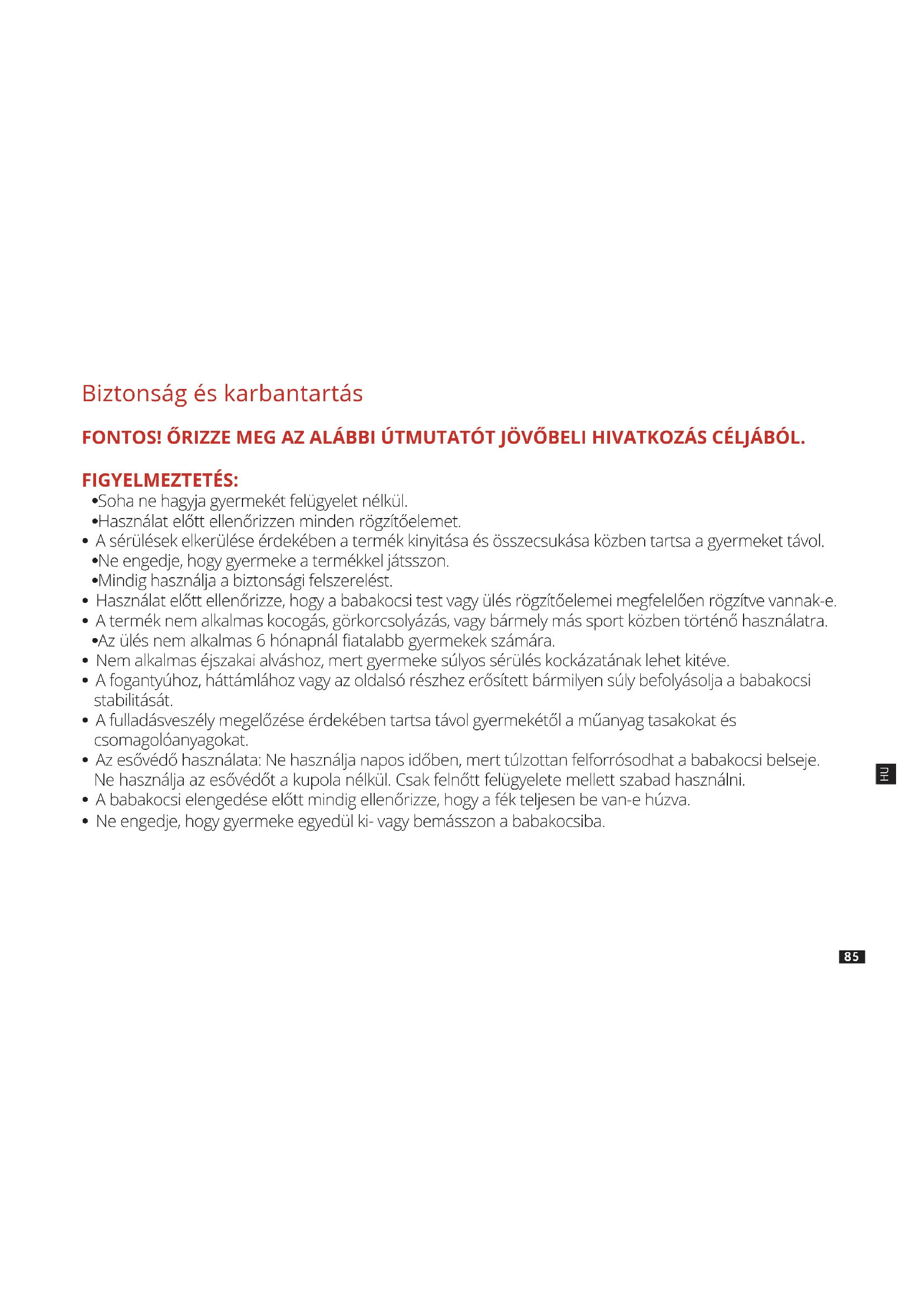 - Ne engedje, hogy gyermeke egyedül ki- vagy bemásszon a babakocsiba. PT HE ET BG SK SI HR HU TR FI NO SV DA CS RU GR PL PT IT ES NL DE FR EN86