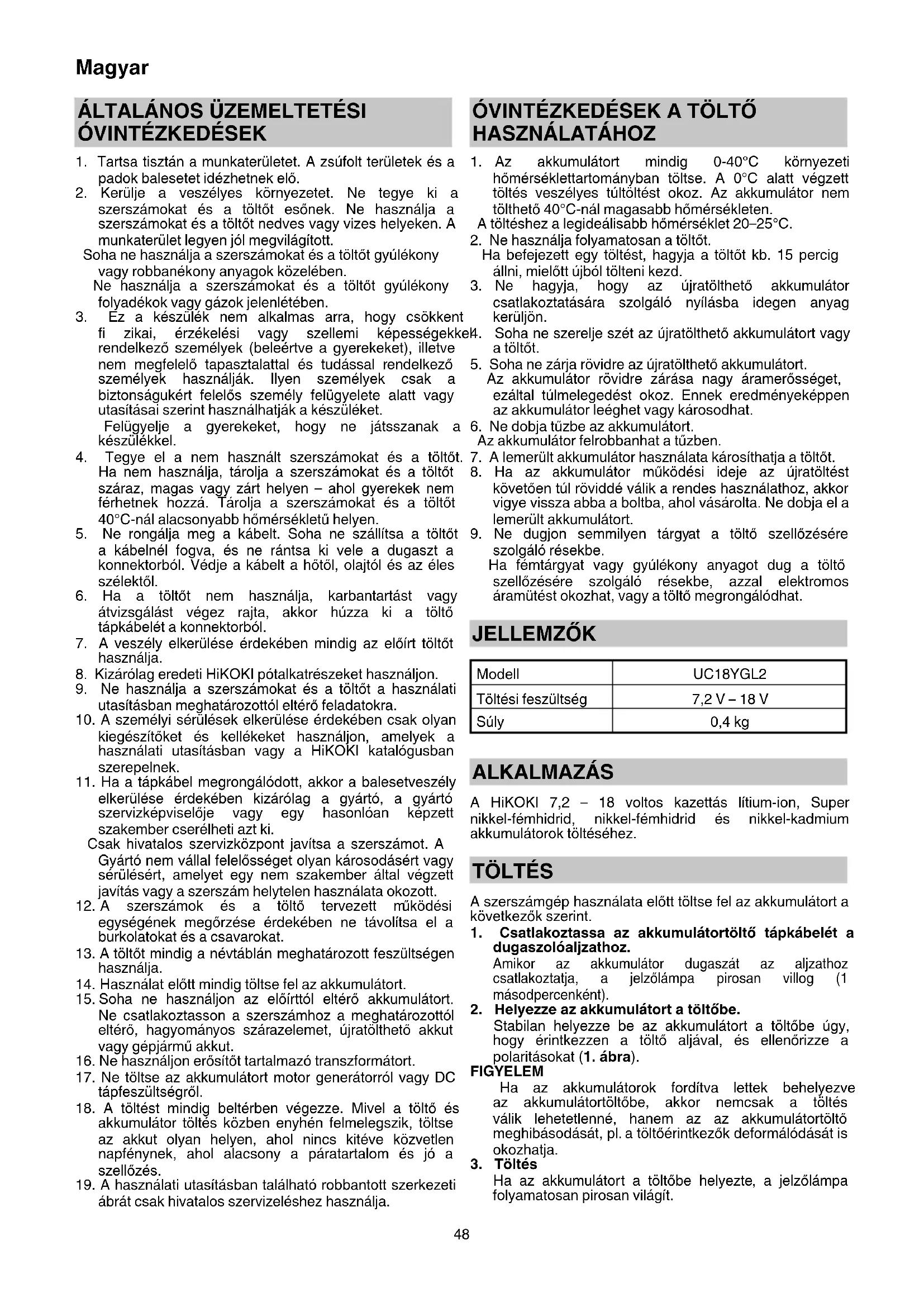 UC 18YGL2 - Akkumulátor töltő HiKOKI - Ingyenes használati útmutató