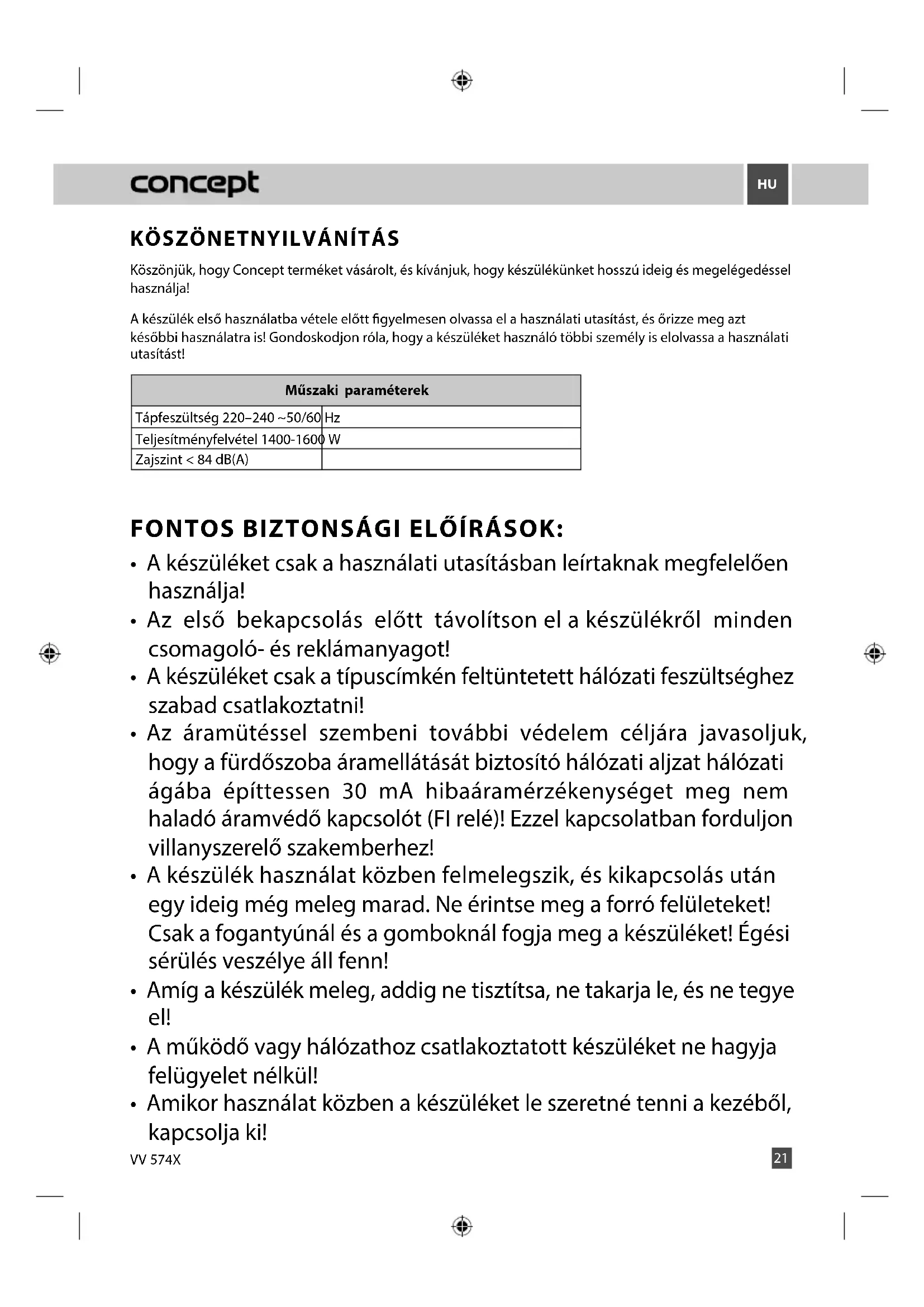 Köszönjuk, hovy Concept terméket vásárolt, és kívánjuk, hovy készülékunket hosszú ideig és megelégedésel használja!