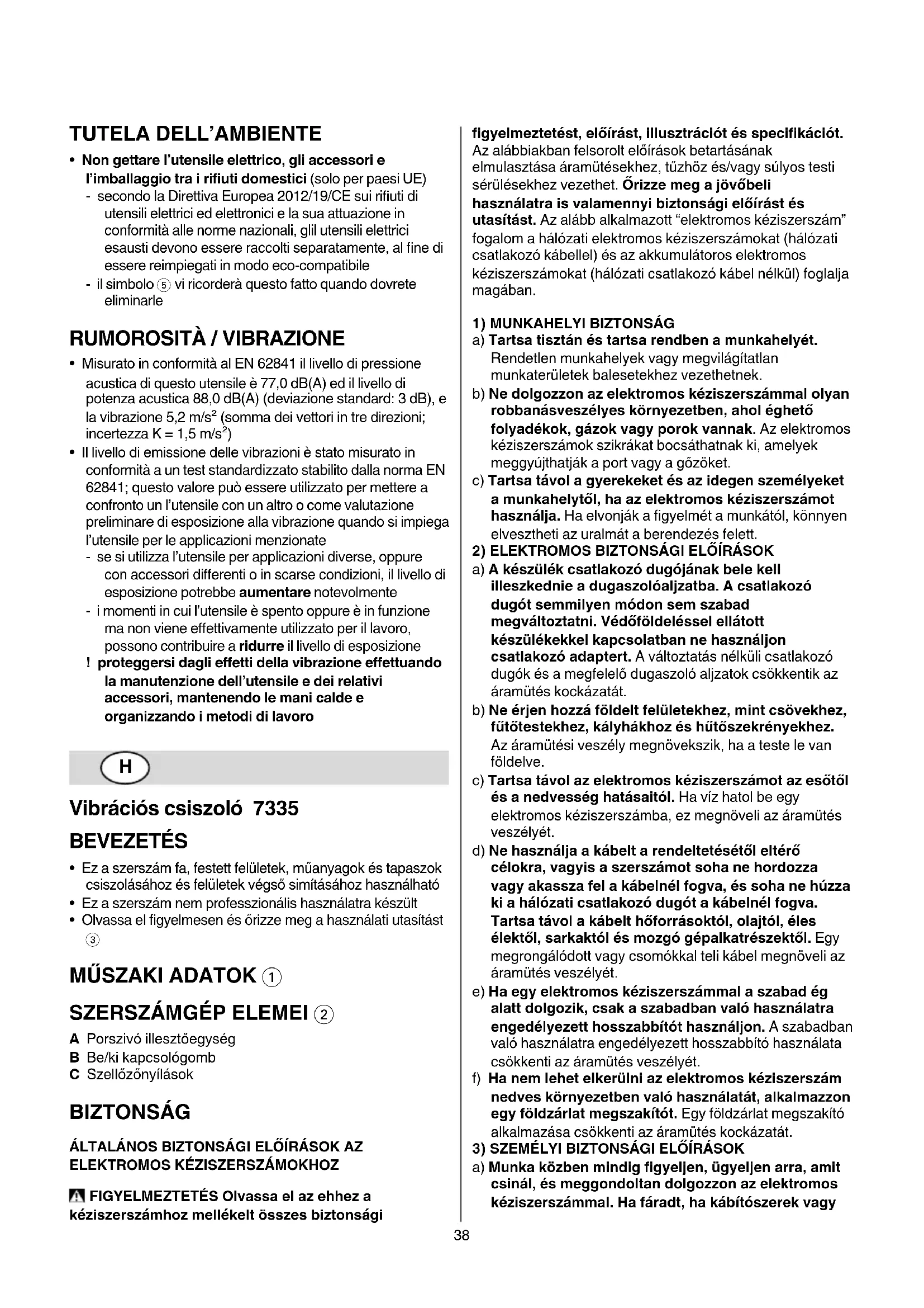 Vibrációs csiszoló 7335 BEVEZETÉS